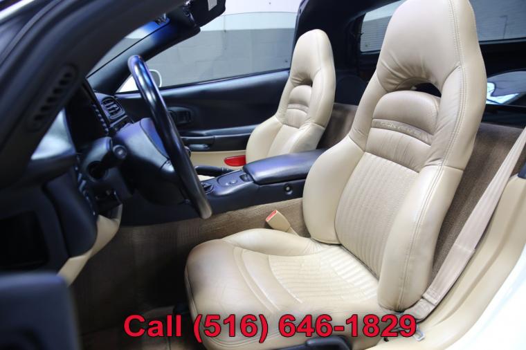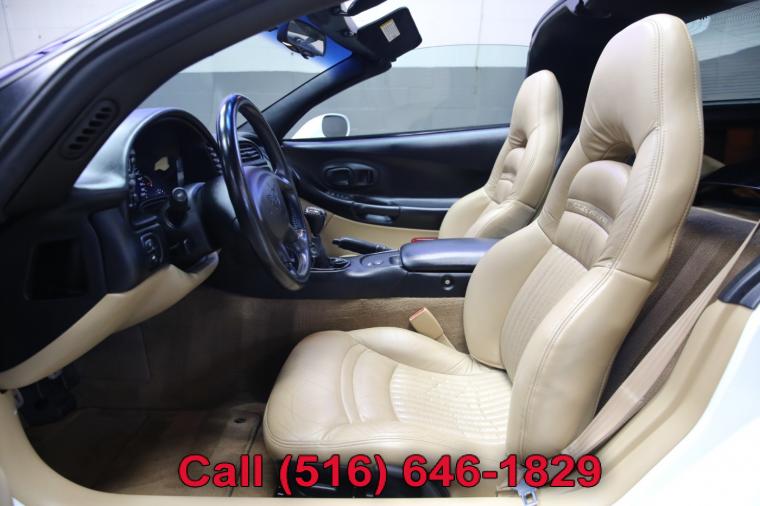 1999 Chevrolet Corvette finished with an Arctic White exterior and Light Oak leather interior. Driven just 32,444 careful miles since new. Options on this Corvette include a 6-Speed Manual Transmission, Preferred Equipment Group 1SA, Adjustable Sport Bucket Seats, Electronic Dual Zone Air Conditioning, Active Handling System, Fog Lamps, Luggage Shade, Body Side Moldings, Memory Package, Remote CD Changer, Removable Transparent Blue Tint Panel, 6 Way Power Passenger Seat, Heads Up Display, Twilight Sentinel, Power Telescopic Steering Column and much more. This Corvette just underwent a complete oil and fluid service within the last 20 miles and it drives even better than it looks. The massive 8 cylinder engine is strong and powerful and the rare 6-speed manual transmission shifts effortlessly through all of the gears. The steering is tight and precise and the brakes feel just great. All of the electronics work perfectly and the air conditioning is ice cold. This really is a fantastic Corvette to drive. The interior is stunning. The Light Oak leather sport seats are in remarkable condition (see pictures) showing just minimal wear to the seats. The dashboard is like new and even the carpets don't look or feel like they have been stepped on thanks to the factory floor mats that have been protecting them. The exterior is what really sets this particular 1999 Corvette apart from the rest. The Arctic White paint is in fantastic condition (see pictures) with no major scratches or dings anywhere at all. The paint is bright and shiny with plenty of luster. Add the optional alloy wheels mounted on great tires and this Corvette really does look special. The 1999 Chevrolet Corvette really is the ultimate American sports car. It has iconic looks, fantastic performance, along with all of Chevrolet's legendary craftsmanship and reliability. The only real apologies to this Corvette are a few typical nicks and chips (see pictures) that are to be expected on any used car. Please feel free to call me (Matt 516-646-1829) with any additional questions you may have