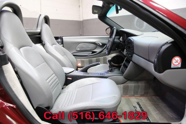 2000 Porsche Boxster finished with an Arena Red Metallic exterior and Graphite Gray leather interior. Driven just 34,017 careful miles since new. Options on this Boxster include a 5-Speed Manual Transmission, Traction Control, 17 Inch Boxster Wheels and much more. This low mileage Boxster just underwent a complete oil and fluid service within the last 20 miles and it drives even better than it looks. The water cooled 6 cylinder engine is strong and powerful and the 5-speed manual transmission shifts effortlessly through all of the gears. The steering is tight and precise and the brakes feel just great. All of the electronics work perfectly and the air conditioning is ice cold. This really is a fantastic Porsche to drive. The interior is really nice. The Graphite Gray leather seats are in excellent condition (see pictures) showing just minimal wear to the seats. The dashboard is like new and even the carpets don't look or feel like they have been stepped on thanks to the Porsche floor mats that have been protecting them. The exterior is what really sets this particular Boxster apart from the rest. The rare Arena Red Metallic paint is in fantastic condition (see pictures) with no major scratches or dings anywhere at all. The paint is bright and shiny with plenty of luster. Add the optional 17 inch wheels mounted on great tires and this Porsche Boxster really does look special. The 2000 Porsche Boxster really is the ultimate roadster. It has iconic looks, fantastic performance, a power convertible top for fun in the sun along with all of Porsche's legendary safety, craftsmanship and reliability. The only real apologies to this Boxster are a few typical nicks and chips (see pictures) that are to be expected on any used car. Please feel free to call me (Matt 516-646-1829) with any additional questions you may have.