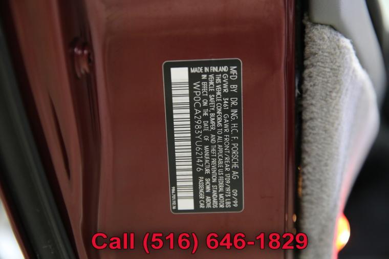 For more information on this 2000 Porsche Boxster, please call European Automobile Company at (516) 646-1829 or with the contact form on this page. This vehicle's vin number is WP0CA2983YU621476 and is recorded as being in stock at European Automobile Company at 100 Dupont Street in Plainview. See all cars from this dealership.