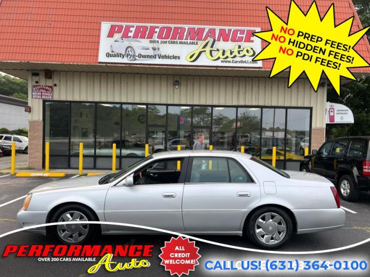 2001 Cadillac Deville DTS! Only 81K Miles! Runs and Drives Great! Come in for a test drive! REMEMBER THE PERFORMANCE AUTO DIFFERENCE - NO PREP FEES! NO HIDDEN FEES! With apologies to all our customers, past and future: All of our competitors advertise cars using price structures that get their cars seen online, while no one sees ours. And so, after 25 years of business, we have to experiment with THEIR system. Therefore our advertised prices on third-party advertisers reflect a $2500 down payment or equivalent trade. It is NOT a HIDDEN FEE: we are completely up front and honest about why we have to try it. Our website clearly states the pricing on every vehicle. Third Party advertisers like Carfax, Cargurus and Autotrader etc. reward this price structure with better placement and badges. We have been asking third party advertisers for many years to give us a level playing field. We always succeed on a level playing field. Our competitors have downpayments between $2500-$9000 or even a % of price, then add hidden fees or require financing through them. Some dealers will not list a downpayment in their ads and you only find out when you go to see the vehicle. With us, financing is not required, but if you prefer to, we work with many banks to get you the best terms. We are sorry for any inconvenience, but pure pricing placed our vehicles at the bottom of search lists. We had no choice but to try advertising their way so that you can at least see our inventory, and hopefully we will do business. We have been selling quality cars with great reviews for 25 years. Our reputation is our strongest quality. We will do everything we can to satisfy you. It is no accident that 30% of our customers are repeat business.