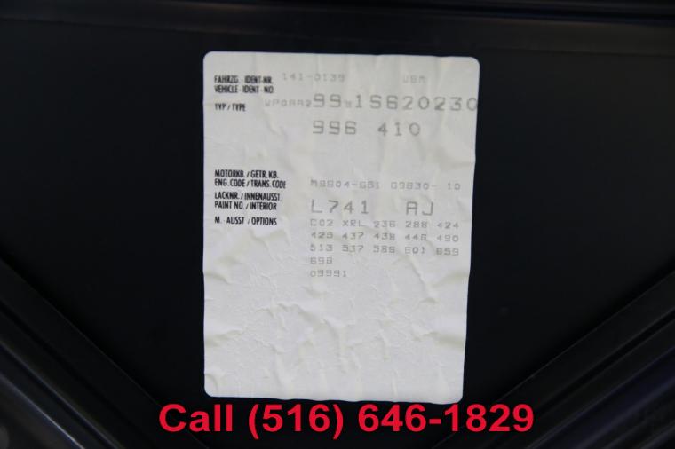 2001 Porsche 911 Carrera 4 Coupe finished with a Black exterior and Black leather interior. Driven 63,151 careful miles since new. Options on this 911 Carrera 4 include a 6-Speed Manual Transmission, Leather Seats, Power Sunroof, 18 Inch Turbo-Look Wheels, CD Player, Rear Wiper and much more. This 911 Carrera 4 Coupe just underwent a complete oil and fluid service within the last 20 miles and it drives even better than it looks. The water cooled 6 cylinder engine is strong and powerful and the 6-speed manual transmission shifts effortlessly through all of the gears. The steering is tight and precise and the brakes feel just great. All of the electronics work perfectly and the air conditioning is ice cold. This really is a fantastic Porsche to drive. The interior is stunning. The Black leather seats are in remarkable condition (see pictures) showing just minimal wear to the seats. The dashboard is like new and even the carpets don't look or feel like they have been stepped on thanks to the Porsche floor mats that have been protecting them. The exterior is what really sets this particular Porsche apart from the rest. The Black paint is in fantastic condition (see pictures) with no major scratches or dings anywhere at all. The paint is bright and shiny with plenty of luster. Add the optional 18 inch wheels mounted on great tires and this Porsche really does look special. The 2001 Porsche 911 Carrera 4 really is the ultimate sportscar. It has iconic looks, fantastic performance, all wheel drive for all weather and road conditions along with all of Porsche's legendary safety, craftsmanship and reliability. The only real apologies to this 911 Carrera 4 Coupe are a few typical chips on the nose (see pictures) and a couple of light nicks here and there. Please feel free to call me (Matt 516-646-1829) with any additional questions you may have.