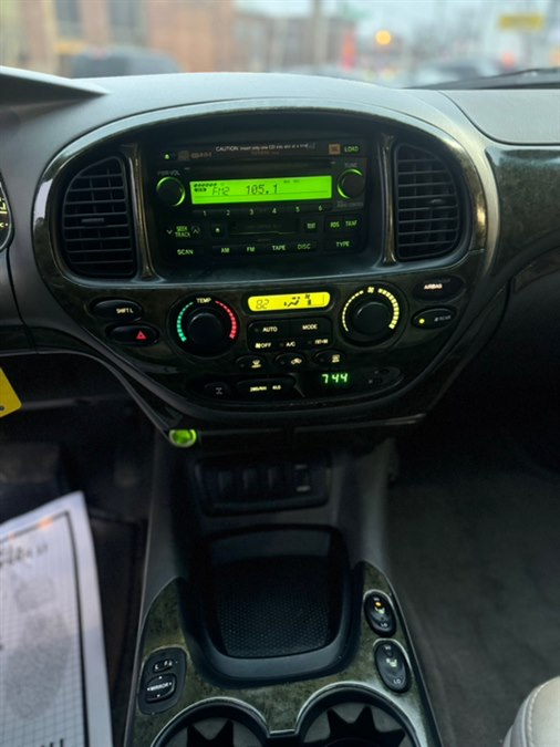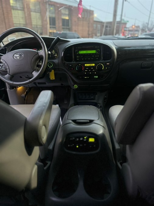 ABS, 4-Wheel Disc Brakes, 5-Speed A/T, 8 Cylinder Engine, A/C, A/T, 3rd Row Seat, Adjustable Steering Wheel, AM/FM Stereo, Automatic Headlights, Power Outlet, Brake Assist, Bucket Seats, CD Player, Child Safety Locks, Climate Control, Cruise Control, Driver Air Bag, Driver Vanity Mirror, Multi-Zone A/C, Stability Control, Four Wheel Drive, Front Reading Lamps, Conventional Spare Tire, Gasoline Fuel, Intermittent Wipers, Pass-Through Rear Seat, Passenger Air Bag, Passenger Air Bag On/Off Switch, Passenger Air Bag Sensor, Passenger Vanity Mirror, Power Door Locks, Power Mirror(s), Power Driver Seat, Power Passenger Seat, Power Steering, Power Windows, Privacy Glass, Rear Bench Seat, Rear Defrost, Rear Head Air Bag, Front Side Air Bag, Front Head Air Bag, Traction Control, Variable Speed Intermittent Wipers, Engine Immobilizer, Color-keyed body side moldings w/chrome inserts, Color-keyed bumpers, Color-keyed door handles, Color-keyed grille, Color-keyed overfenders, Color-keyed pwr mirrors, Mudguards, Multi-reflector headlamps w/auto off, Rear intermittent wiper, Rear quarter & tailgate privacy glass, Washer-linked variable intermittent wipers, (10) cupholders, 3-in-1 AM/FM stereo w/cassette/CD-inc: (6) speakers, 50/50 split fold-down reclining 3rd row bench seat w/tumble/slide feature, remove functions, adjustable headrests, 60/40 split fold-down 2nd row bench seat w/tumble feature, adjustable headrests, center armrest, Anti-theft system w/engine immobilizer, Cargo area 12-volt auxiliary pwr outlet, Cargo area grocery bag hooks, Center console-inc: note pad holder, dual cupholders, dual 12V aux pwr outlets, covered armrest storage compartment, Cruise control, Door map pockets & courtesy lamps, Dual sun visors w/vanity mirrors, sliding extensions, Dual zone front & rear digital auto climate control, Fabric-trimmed seats & doors, In-dash 4-wheel drive transfer lever, In-glass antenna, Maplights, Pwr door locks, Pwr front bucket seats w/adjustable headrests, Pwr rear window w/defogger, Pwr windows w/front 1-touch auto up/down, jam control, Remote hood & fuel filler door releases, Tilt steering wheel w/cruise controls, 130-amp alternator, 16" x 7.0" styled steel wheels, 4.7L DOHC EFI 32-valve V8 i-Force VVT-i engine, 5-link live axle rear suspension w/coil-springs, 5-speed ECT-i automatic transmission w/OD, 6, 700# GVWR, Anti-lock brake system (ABS) w/brake assist, Electronic brakeforce distribution (EBD), Engine speed-sensing pwr rack & pinion steering, Front & rear stabilizer bars, low-pressure gas-filled shock absorbers, Full size spare tire, Independent double-wishbone front suspension w/coil-springs, Multi-mode 4-wheel drive w/locking center differential, P265/70R16 mud & snow tires, Pwr 4-wheel ventilated disc brakes w/load-sensing proportioning valve, Traction control (TRAC), Vehicle stability control (VSC), 2nd/3rd row child restraint system (CRS) tether anchors bracket & ISO-FIX anchors, 3-point ALR/ELR seatbelts in all seating positions, Anti-lock brake system (ABS) w/brake assist, Child protector rear door locks, Driver & front passenger airbags w/advanced airbag system, occupant classification sensor, Driver & front passenger seat-mounted side airbags, Electronic brakeforce distribution (EBD), Front & 2nd row roll-sensing side curtain airbags w/cutoff switch, Front seat belt force limiters & pretensioners, Side-impact door beams, Traction control (TRAC), Vehicle stability control (VSC)