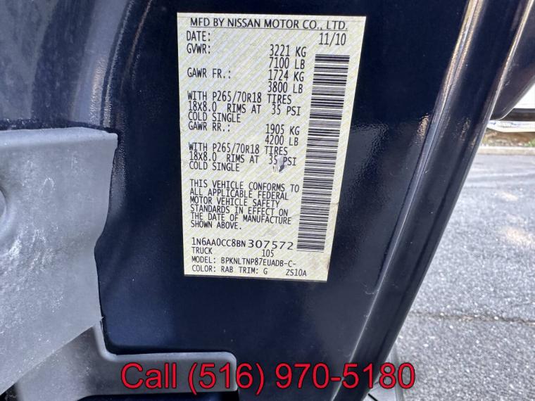 For more information on this 2011 Nissan Titan, please call Car Father at (516) 970-5180 or with the contact form on this page. This vehicle's vin number is 1N6AA0CC8BN307572 and is recorded as being in stock at Car Father at 4214 Austin Blvd in Island Park. See all cars from this dealership.