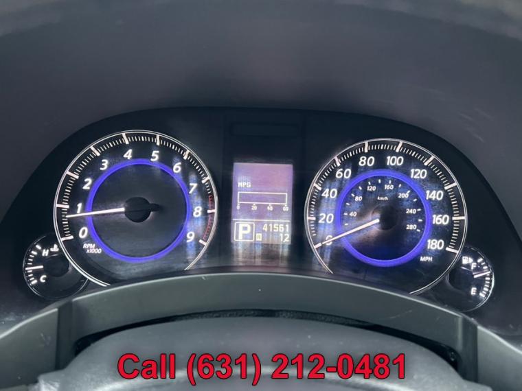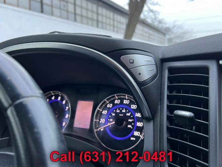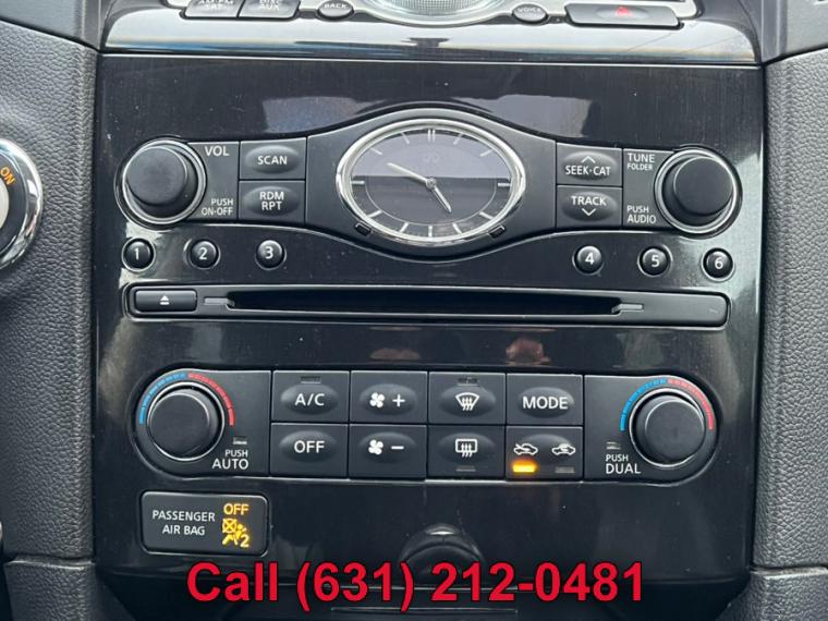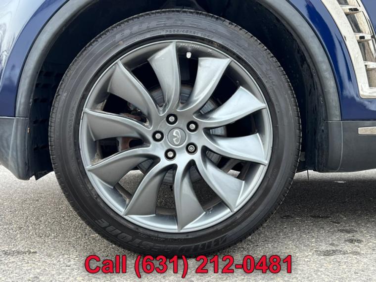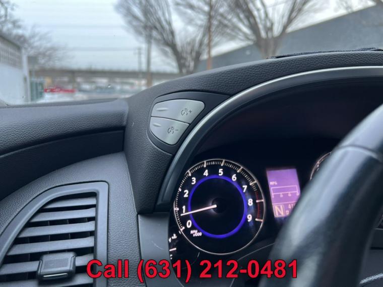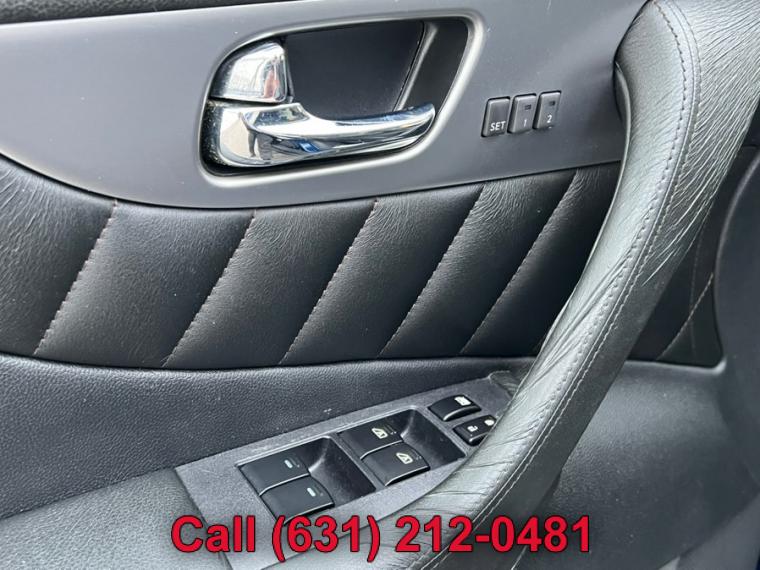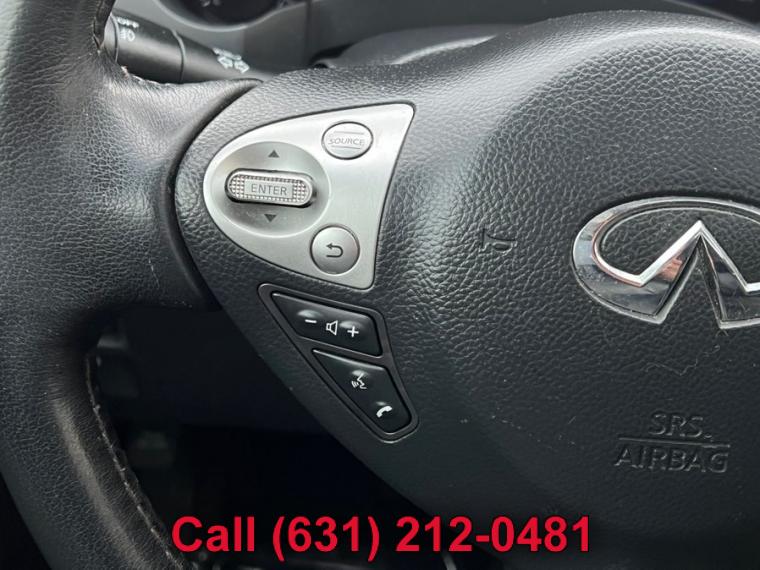 ABS, 4-Wheel Disc Brakes, 7-Speed A/T, A/C, A/T, Adjustable Steering Wheel, All Wheel Drive, Aluminum Wheels, AM/FM Stereo, Transmission w/Dual Shift Mode, Automatic Headlights, Auxiliary Audio Input, Power Outlet, Back-Up Camera, Brake Assist, Bucket Seats, CD Player, Child Safety Locks, Climate Control, Cruise Control, Driver Air Bag, Driver Illuminated Vanity Mirror, Driver Adjustable Lumbar, Driver Vanity Mirror, Multi-Zone A/C, Auto-Dimming Rearview Mirror, Stability Control, Fog Lamps, Floor Mats, Front Reading Lamps, Tow Hooks, Gasoline Fuel, Hard Disk Drive Media Storage, Heated Front Seat(s), Heated Mirrors, HID headlights, Intermittent Wipers, Keyless Entry, Keyless Start, Leather Seats, Leather Steering Wheel, MP3 Player, Pass-Through Rear Seat, Passenger Air Bag, Passenger Air Bag Sensor, Passenger Illuminated Visor Mirror, Passenger Vanity Mirror, Power Door Locks, Power Mirror(s), Power Driver Seat, Power Folding Mirrors, Power Passenger Seat, Power Steering, Sun/Moonroof, Power Windows, Premium Sound System, Privacy Glass, Rear A/C, Rear Bench Seat, Rear Defrost, Rear Head Air Bag, Rear Reading Lamps, Remote Trunk Release, Satellite Radio, Front Side Air Bag, Front Head Air Bag, Steering Wheel Audio Controls, Sun/Moon Roof, Tire Pressure Monitor, Tires - Front Performance, Tires - Rear Performance, Traction Control, Trip Computer, Universal Garage Door Opener, V6 Cylinder Engine, Variable Speed Intermittent Wipers, Engine Immobilizer, Bluetooth Connection, 18" x 8" split 10-spoke silver-painted aluminum alloy wheels, 21" 10-spoke graphite-finished aluminum alloy wheels, Aluminum roof rails w/graphite finish -inc: crossbars w/graphite finish, Auto on/off high intensity discharge (HID) bi-xenon headlamps, Auto on/off high intensity discharge (HID) bi-xenon headlamps -inc: adaptive front lighting system, auto-leveling feature, dark tinted headlamps housings, Chrome door handles, Dark chrome grille, Dark tinted side air vents & lower side trim, Driver/front passenger LED puddle lamps, Integrated front fog lights, Intermittent rear wiper w/washer, LED tail lamps, P265/45R21 all-season tires, P265/60VR18 all-season tires, Pwr folding pwr body color heated mirrors w/courtesy lights, Pwr folding pwr body color heated mirrors w/courtesy lights -inc: 2-position mirror memory settings, reverse tilt down feature, Pwr tilt/sliding tinted glass sunroof w/one-touch open/close & safety reverse, Rear privacy glass, Speed-sensitive variable intermittent front wipers, Steel spare wheel, T175/90D18 temporary use spare tire, UV-reducing solar front glass, (4) aux 12V pwr outlets, (4) pop-up tie-down cargo hooks, 10-way pwr driver seat w/pwr lumbar, 10-way pwr driver seat w/pwr lumbar -inc: 2-position driver memory, 60/40 split remote-folding reclining rear bench seat, 8-way pwr passenger seat, Aluminum pedals, Analog clock, Auto-dimming rearview mirror w/compass, Black lacquer interior trim w/aluminum accents, Cruise control, Dual front map lights & rear reading lights, Dual illuminated visor vanity mirrors w/sunshade extensions, Dual level center console w/12V pwr outlet, (2) cup holders, Dual-zone auto climate control system, Electric rear window defroster w/timer, Fine Vision electroluminescent gauges, Fold-down rear seat center armrest w/storage, (2) cup holders, Front seatback pockets, Front/rear carpeted floor mats, Front/rear carpeted floor mats -inc: unique blue piping, Front/rear passenger-assist grips, Heated front bucket seats w/active head restraints, HomeLink universal garage door opener, Infiniti hard drive navigation system -inc: 8" LCD screen w/Infiniti controller, voice recognition for audio & navigation controls, trip computer, exterior temp display, vehicle maintenance information, compass, XM NavTraffic, XM NavWeather, Zagat restaurant guide, Intelligent key system w/remote keyless entry, push button ignition, Leather seat trim, Leather-wrapped shift knob w/aluminum accents, Leather-wrapped steering wheel w/cruise & audio controls, Leather-wrapped steering wheel w/cruise & audio controls -inc: 2-position memory settings, Lockable glove box, Manual tilt/telescoping steering wheel, Overhead console w/sunglasses storage, Pwr cargo door release w/electric closure assist, Pwr door locks w/selective unlocking, Pwr tilt/telescopic steering column w/2-position memory, Pwr windows w/front auto up/down & safety reverse, Rear seat HVAC vents, Retained accessory pwr, Sequential welcome lighting, Stainless steel kick plates w/Infiniti logo, Vehicle info system -inc: 7" LCD screen w/Infiniti controller, trip computer, exterior temp display, vehicle maintenance information, Vehicle security system w/vehicle immobilizer, 3.5L DOHC SMPI V6 engine, 4-wheel pwr vented disc brakes, 7-speed automatic transmission w/OD -inc: manual shift mode, down shift rev-matching, adaptive shift control (ASC), ATTESA E-TS all-wheel drive w/snow mode, Battery saver, Dual exhaust w/polished tips, Front tow hook, Front/rear stabilizer bars, Independent double wishbone front suspension, Independent multi-link rear suspension, Vehicle speed-sensitive variable pwr rack & pinion steering, 4-wheel anti-lock braking system (ABS), Around View Monitor w/front/rear sonar system, Child safety rear door locks, Driver/front passenger seat-mounted side-impact airbags, Dual-stage driver/front passenger airbags w/passenger occupancy sensor, Electric brake force distribution (EBD) w/brake assist, Front 3-point safety belts w/pretensioners & load limiters, Front/rear crumple zones, Height-adjustable front shoulder belts, LATCH (Lower anchors & tethers for children) system, RearView Monitor, Roof mounted front/rear curtain side-impact airbags w/rollover sensor, Tire pressure monitoring system, Traction control system (TCS), Vehicle dynamic control (VDC)