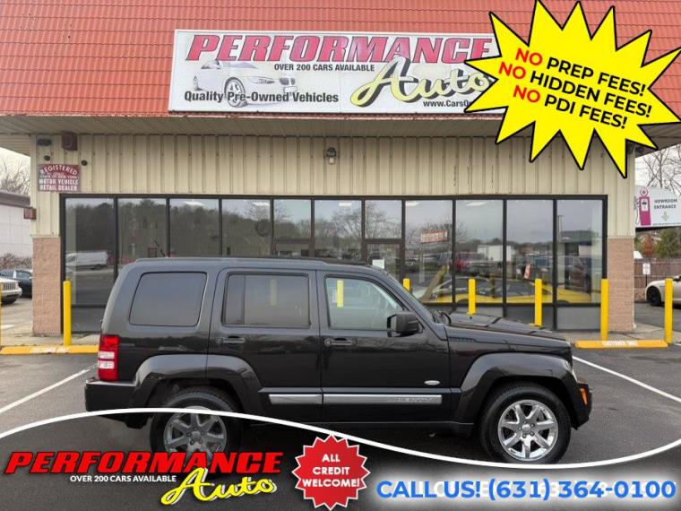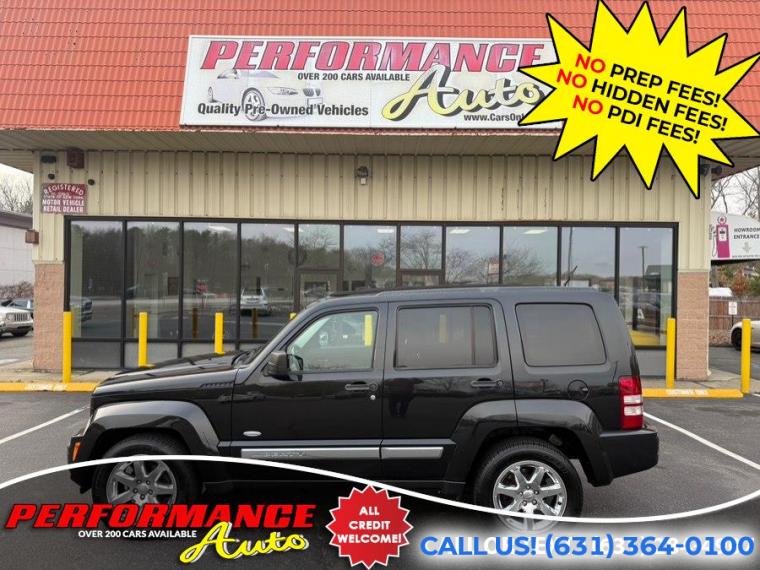 • 100% Clean Carfax! Only 83K Miles! 2012 Jeep Liberty Sport Latitude 4x4! Skyview Roof! Leather Interior! and More! Runs and Drives Great! Come in for a Test Drive! REMEMBER THE PERFORMANCE AUTO DIFFERENCE - NO PREP FEES! NO HIDDEN FEES! With apologies to all our customers, past and future: All of our competitors advertise cars using price structures that get their cars seen online, while no one sees ours. And so, after 25 years of business, we have to experiment with THEIR system. Therefore our advertised prices on third-party advertisers reflect a $2500 down payment or equivalent trade. It is NOT a HIDDEN FEE: we are completely up front and honest about why we have to try it. Our website clearly states the pricing on every vehicle. Third Party advertisers like Carfax, Cargurus and Autotrader etc. reward this price structure with better placement and badges. We have been asking third party advertisers for many years to give us a level playing field. We always succeed on a level playing field. Our competitors have downpayments between $2500-$9000 or even a % of price, then add hidden fees or require financing through them. Some dealers will not list a downpayment in their ads and you only find out when you go to see the vehicle. With us, financing is not required, but if you prefer to, we work with many banks to get you the best terms. We are sorry for any inconvenience, but pure pricing placed our vehicles at the bottom of search lists. We had no choice but to try advertising their way so that you can at least see our inventory, and hopefully we will do business. We have been selling quality cars with great reviews for 25 years. Our reputation is our strongest quality. We will do everything we can to satisfy you. It is no accident that 30% of our customers are repeat business.