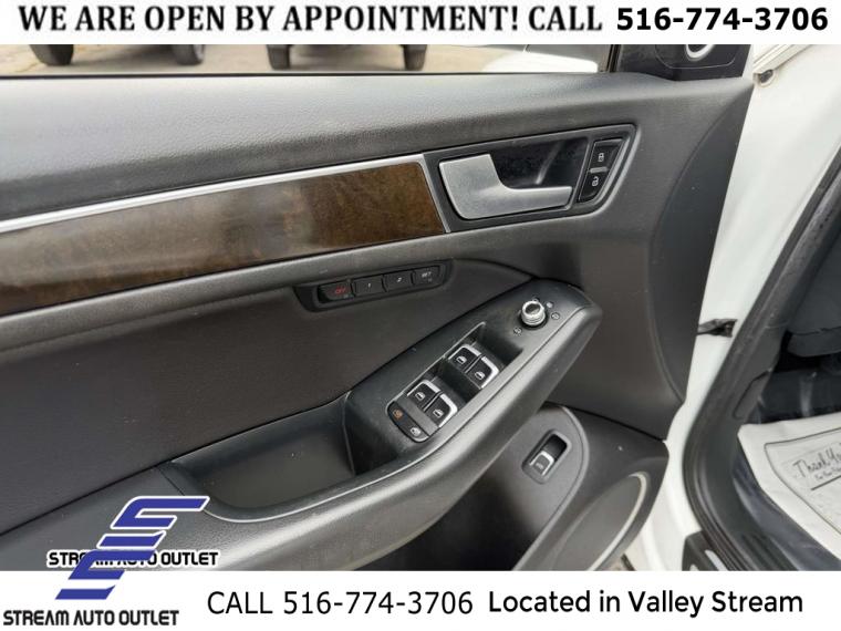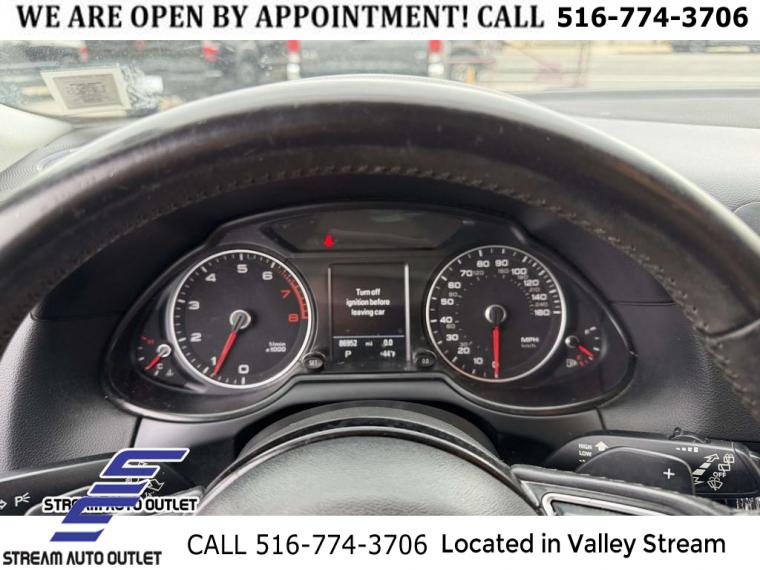10 Speakers, AM/FM radio: Sirius, CD player, Radio data system, Radio: Audi MMI Plus System w/6.5" Color Screen, Air Conditioning, Automatic temperature control, Front dual zone A/C, Rear air conditioning, Rear window defroster, Power driver seat, Power steering, Power windows, Remote keyless entry, Steering wheel mounted audio controls, Four wheel independent suspension, Speed-sensing steering, Traction control, 4-Wheel Disc Brakes, ABS brakes, Dual front impact airbags, Dual front side impact airbags, Front anti-roll bar, Low tire pressure warning, Occupant sensing airbag, Overhead airbag, Rear anti-roll bar, Brake assist, Electronic Stability Control, Delay-off headlights, Front fog lights, Rear fog lights, Panic alarm, Security system, Speed control, Bumpers: body-color, Heated door mirrors, Power door mirrors, Roof rack, Spoiler, Turn signal indicator mirrors, Driver door bin, Driver vanity mirror, Front reading lights, Garage door transmitter: HomeLink, Genuine wood console insert, Genuine wood dashboard insert, Genuine wood door panel insert, Illuminated entry, Leather Shift Knob, Leather steering wheel, Outside temperature display, Overhead console, Passenger vanity mirror, Rear reading lights, Rear seat center armrest, Tachometer, Telescoping steering wheel, Tilt steering wheel, Trip computer, Front Bucket Seats, Front Center Armrest, Leather Seating Surfaces, Power Front Bucket Seats, Power passenger seat, Split folding rear seat, Passenger door bin, 8.0J x 18" 5-Spoke-V-Design Wheels, Alloy wheels, Rain sensing wipers, Rear window wiper, Speed-Sensitive Wipers, Variably intermittent wipers, 2.84 Axle Ratio, * NYS INSPECTION INCLUDED *, * FULL INTERIOR / EXTERIOR DETAIL *, * BLUETOOTH *, * LIMITED NYS LEMON LAW WARRANTY INCLUDED *, *FRESH OIL CHANGE *, * 150 MULTI POINT INSPECTION *