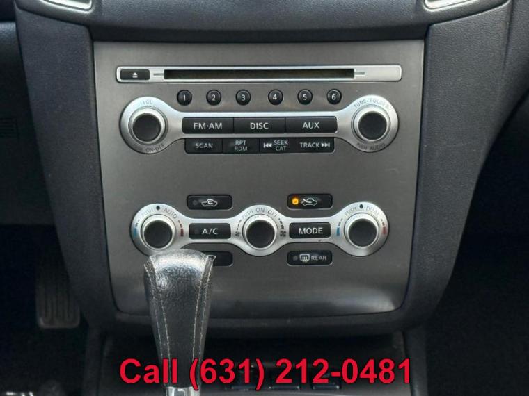 ABS, 4-Wheel Disc Brakes, A/C, A/T, Security System, Aluminum Wheels, AM/FM Stereo, Automatic Headlights, Auxiliary Audio Input, Back-Up Camera, Brake Assist, Bucket Seats, CD Player, Child Safety Locks, Climate Control, Temporary Spare Tire, CVT Transmission, Cruise Control, Driver Air Bag, Driver Illuminated Vanity Mirror, Driver Adjustable Lumbar, Driver Vanity Mirror, Multi-Zone A/C, Auto-Dimming Rearview Mirror, Stability Control, Fog Lamps, Front Wheel Drive, Gasoline Fuel, HID headlights, Integrated Turn Signal Mirrors, Intermittent Wipers, Keyless Entry, Keyless Start, MP3 Player, Passenger Air Bag, Passenger Air Bag Sensor, Passenger Illuminated Visor Mirror, Passenger Vanity Mirror, Power Door Locks, Power Driver Seat, Power Passenger Seat, Power Steering, Power Windows, Rear Bench Seat, Rear Defrost, Rear Head Air Bag, Satellite Radio, Front Side Air Bag, Front Head Air Bag, Steering Wheel Audio Controls, Generic Sun/Moonroof, Tire Pressure Monitor, Tires - Front Performance, Tires - Rear Performance, Traction Control, Trip Computer, Universal Garage Door Opener, V6 Cylinder Engine, Variable Speed Intermittent Wipers, Engine Immobilizer, Bluetooth Connection, 8" Wheels, Body-Colored Front Bumper, Body-Colored Power Side Mirrors w/Manual Folding and Turn Signal Indicator, Body-Colored Rear Bumper, Body-Colored Side Mirrors w/Manual Folding and Turn Signal Indicator, Chrome Door Handles, Chrome Grille, Chrome Side Windows Trim and Black Front Windshield Trim, Clearcoat Paint, Compact Spare Tire Mounted Inside Under Cargo, Express Open/Close Sliding And Tilting Glass 1st Row Sunroof, Express Open/Close Sliding And Tilting Glass 1st Row Sunroof w/Sunshade, Fixed Rear Window w/Defroster, Front Fog Lamps, Front License Plate Bracket, Front Windshield -inc: Sun Visor Strip, Fully Automatic Projector Beam High Intensity Low Beam Headlamps w/Delay-Off, Galvanized Steel/Aluminum Panels, LED Brakelights, Light Tinted Glass, Speed Sensitive Variable Intermittent Wipers, Steel Spare Wheel, Tires: P245/40VR19 All-Season, Tires: P245/45R18 V-Rated AS Radial, Trunk Rear Cargo Access, Wheels: 18" Aluminum-Alloy, Wheels: 19" Aluminum Dark Hyper Silver, 2 12V DC Power Outlets, 2 Seatback Storage Pockets, 60-40 Folding Bench Front Facing Fold Forward Seatback Rear Seat, Air Filtration, Analog Display, Bench Front Facing Rear Seat, Cargo Space Lights, Carpet Floor Trim and Carpet Trunk Lid/Rear Cargo Door Trim, Compass, Cruise Control w/Steering Wheel Controls, Day-Night Auto-Dimming Rearview Mirror, Delayed Accessory Power, Driver And Passenger Door Bins, Driver And Passenger Visor Vanity Mirrors w/Driver And Passenger Illumination, Driver And Passenger Auxiliary Mirror, Driver Foot Rest, Dual Zone Front Automatic Air Conditioning, Engine Immobilizer, Fade-To-Off Interior Lighting, FOB Controls -inc: Trunk/Hatch/Tailgate and Windows, Front And Rear Map Lights, Front Bucket Seats -inc: 8-way power driver's seat, driver's seat manual thigh support extension, driver's power lumbar support and 4-way power passenger's seat, Front Center Armrest w/Storage, Front Center Armrest w/Storage and Rear Center Armrest, Front Cupholder, Full Carpet Floor Covering, Full Cloth Headliner, Full Floor Console w/Covered Storage, Mini Overhead Console w/Storage and 2 12V DC Power Outlets, Gauges -inc: Speedometer, Odometer, Engine Coolant Temp, Tachometer, Trip Odometer and Trip Computer, HomeLink Garage Door Transmitter, HVAC -inc: Underseat Ducts and Console Ducts, Illuminated Locking Glove Box, Interior Trim -inc: Chrome And Metal-Look Interior Accents, Interior Trim -inc: Piano Black Instrument Panel Insert, Piano Black Door Panel Insert, Piano Black Console Insert, Chrome And Metal-Look Interior Accents, Leather Gear Shift Knob, Leather Steering Wheel, Leather-Appointed Seat Trim, Manual Anti-Whiplash Adjustable Front Head Restraints and Manual Adjustable Rear Head Restraints, Manual Tilt/Telescoping Steering Column, Mini Overhead Console and 2 12V DC Power Outlets, Mini Overhead Console w/Storage and 2 12V DC Power Outlets, Outside Temp Gauge, Perimeter Alarm, Power 1st Row Windows w/Driver And Passenger 1-Touch Up/Down, Power Door Locks w/Autolock Feature, Power Fuel Flap Locking Type, Power Rear Windows, Proximity Key For Doors And Push Button Start, Rear Cupholder, Remote Keyless Entry w/Integrated Key Transmitter, 4 Door Curb/Courtesy, Illuminated Entry, Illuminated Ignition Switch and Panic Button, Remote Releases -Inc: Power Cargo Access, Seats w/Leatherette Back Material, Trip Computer, Valet Function, Vinyl Door Trim Insert, 130 Amp Alternator, 20 Gal. Fuel Tank, 4-Wheel Disc Brakes w/4-Wheel ABS, Front Vented Discs and Brake Assist, 4698# Gvwr, 5.17 Axle Ratio, 55-Amp/Hr 550CCA Maintenance-Free Battery w/Run Down Protection, Engine: 3.5L DOHC 24-Valve V6, Front And Rear Anti-Roll Bars, Front-Wheel Drive, Gas-Pressurized Shock Absorbers, Hydraulic Power-Assist Speed-Sensing Steering, Multi-Link Rear Suspension w/Coil Springs, Quasi-Dual Stainless Steel Exhaust w/Chrome Tailpipe Finisher, Sport-Tuned Suspension, Strut Front Suspension w/Coil Springs, Transmission w/Driver Selectable Mode, Transmission w/Driver Selectable Mode and Sequential Shift Control, Transmission: Continuously Variable (CVT), ABS And Driveline Traction Control, Airbag Occupancy Sensor, Curtain 1st And 2nd Row Airbags, Dual Stage Driver And Passenger Front Airbags, Dual Stage Driver And Passenger Seat-Mounted Side Airbags, Electronic Stability Control (ESC), Outboard Front Lap And Shoulder Safety Belts -inc: Rear Center 3 Point, Height Adjusters and Pretensioners, Rear Child Safety Locks, RearView Monitor Back-Up Camera, Side Impact Beams, Tire Specific Low Tire Pressure Warning