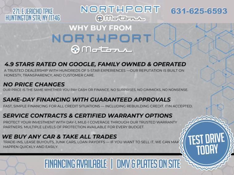 Disclaimer: All prices on used cars exclude the cost of vehicle registration, title, fees and taxes. Neither Northport Motors nor Long Island Used Cars is responsible for typographical errors or misprints. All information should be double checked with dealer including pricing and availability. Additionally, some states require dealers to notify consumers that all vehicles may be subject to open recall(s). Vehicles can be checked for open recalls by visiting www.SaferCar.gov or www.nhtsa.gov/recalls. Vehicles are subject to prior sale and may no longer be available. Please check with the seller for more information. You can check for recall status with this RECALL STATUS LINK.