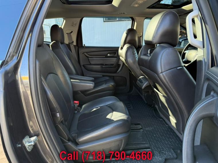 ABS, 4-Wheel Disc Brakes, 6-Speed A/T, A/C, A/T, 3rd Row Seat, Adjustable Steering Wheel, All Wheel Drive, Aluminum Wheels, AM/FM Stereo, Automatic Headlights, Auxiliary Audio Input, Back-Up Camera, Bucket Seats, CD Player, Child Safety Locks, Climate Control, Cruise Control, Daytime Running Lights, Driver Air Bag, Driver Illuminated Vanity Mirror, Driver Adjustable Lumbar, Driver Vanity Mirror, Multi-Zone A/C, Auto-Dimming Rearview Mirror, Stability Control, Fog Lamps, Floor Mats, Front Reading Lamps, Gasoline Fuel, Heated Front Seat(s), Heated Mirrors, Integrated Turn Signal Mirrors, Intermittent Wipers, Keyless Entry, Leather Seats, Leather Steering Wheel, MP3 Capability, Navigation from Telematics, Telematics, Pass-Through Rear Seat, Passenger Air Bag, Passenger Air Bag Sensor, Passenger Illuminated Visor Mirror, Passenger Vanity Mirror, Power Door Locks, Power Mirror(s), Power Driver Seat, Power Liftgate, Power Passenger Seat, Power Steering, Sun/Moonroof, Power Windows, Premium Sound System, Privacy Glass, Rear Bucket Seats, Rear A/C, Rear Defrost, Rear Head Air Bag, Rear Parking Aid, Rear Reading Lamps, Rear Seat Audio Controls, Rear Spoiler, Remote Engine Start, Remote Trunk Release, Requires Subscription, Satellite Radio, Front Side Air Bag, Front Head Air Bag, Smart Device Integration, Steering Wheel Audio Controls, Tire Pressure Monitor, Tires - Front All-Season, Tires - Rear All-Season, Traction Control, Trip Computer, Universal Garage Door Opener, V6 Cylinder Engine, Bluetooth Connection, Woodgrain Interior Trim, Door handles, chrome, Fog lamps, front, Glass, Solar-Ray deep-tinted (all windows except light-tinted glass on windshield and driver and front passenger side glass), Headlamp control, automatic on and off, Headlamps, dual cavity, halogen, Liftgate, rear power, Mirrors, outside heated power-adjustable, manual-folding and driver-side auto-dimming, body-color with integrated turn signal indicators, Moldings, body-color bodyside, Roof rail moldings, Spoiler, rear, Tires, P255/65R18 all-season, blackwall, Wheels, 4 - 18" X 7.5" (45.7 cm x 19.1 cm) machined, Wiper, rear intermittent with washer, Wipers, front intermittent with washers, Air conditioning, rear manual, Air conditioning, tri-zone automatic climate control with individual climate settings for driver and right-front passenger and second/third row controls for second and third row passengers, Bluetooth for phone, personal cell phone connectivity to vehicle audio system (Upgraded to Bluetooth streaming audio for music and select phones with (UI6) Chevrolet MyLink radio, (UI4) Chevrolet MyLink radio with Rear Seat Entertainment, (UI8) Chevrolet MyLink radio with Navigation or (UI7) Chevrolet MyLink radio with Navigation and Rear Seat Ente, Cargo storage, tray under rear floor, Console, front center with 2 cup holders, covered storage bin and sliding armrest with storage, Cruise control, electronic with set and resume speed, Cup holders 10 with (ABB) 7-passenger (2-2-3 seating configuration) and 12 with (ABC) 8-passenger (2-3-3 seating configuration), Defogger, rear-window electric, Door locks, power programmable with lockout protection, Floor covering, color-keyed carpeting, Floormats, color-keyed carpeted front, second and third row, removable, Instrumentation, enhanced Driver Information Center with personalization features, speedometer, tachometer, outside temperature display, low oil, fuel and coolant indicators, odometer, trip odometer and trip computer with digital compass, Insulation, acoustical package, Lighting, interior with theater dimming, cargo compartment, reading lights for front seats, second row reading lamps integrated into dome light, door-and tailgate-activated switches and illuminated entry and exit feature, Mirror, inside rearview auto-dimming, Rear Park Assist, Rear Vision Camera display integrated into Color Touch Radio, Reclining front buckets, Remote Keyless Entry, programmable with 2 transmitters, panic button and extended range, Remote vehicle start with extended range Remote Keyless Entry, Seat trim, Premium Cloth, Seat, 2-way manual front passenger, included with Premium Cloth, Seat, 8-way power driver with power lumbar, Seat, third row manual 60/40 split-folding bench, Seating, 7-passenger (2-2-3 seating configuration) with 2nd row flat-folding Captains Chair and third row 60/40 split flat folding bench seat (May be substituted with (ABC) 8-passenger (2-3-3 seating configuration).), Seats, heated driver and front passenger, Steering column, tilt and telescopic with brake/transmission shift interlock, Steering wheel, leather-wrapped with mounted cruise and audio controls, Trim, interior, wood grain center stack and interior trim, Universal Home Remote includes garage door opener, 3-channel programmable, Visors, driver and front passenger padded with cloth trim, color-keyed and illuminated vanity mirrors, Windows, power with driver Express-Down, All wheel drive, Axle, 3.16 ratio, Battery, high capacity 660 cold-cranking amps, Brakes, 4-wheel antilock, 4-wheel disc, Engine, 3.6L SIDI V6 (281 hp [210 kW] @ 6300 rpm, 266 lb-ft of torque @ 3400 rpm [359.1 N-m]), Exhaust, single outlet, GVWR, 6459 lbs. (2930 kg) (CV14526 AWD models only.), Steering, power, constant effort, Suspension, Ride and Handling, Transmission, 6-speed automatic (Included and only available with CV14526 AWD models.), Air bags, front passenger air bag suppression (Always use safety belts and child restraints. Children are safer when properly secured in a rear seat in the appropriate child restraint. See the Owner's Manual for more information.), Air bags, frontal and side-impact for driver and front passenger, driver inboard seat-mounted side-impact and head curtain side-impact for all rows in outboard seating positions (Always use safety belts and the correct child restraints. Children are safer when properly secured in a rear seat in the appropriate child restraint. See the Owner's Manua, Daytime Running Lamps, Door 