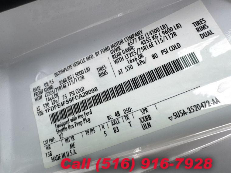 For more information on this 2015 Ford E-450, please call Major Vehicle Exchange at (516) 916-7928 or with the contact form on this page. This vehicle's vin number is 1FDFE4FS9FDA29098 and is recorded as being in stock at Major Vehicle Exchange at 5000 Brush Hollow Rd in Westbury. See all cars from this dealership.