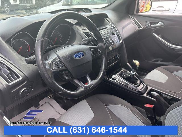 Equipment Group 400A, 6 Speakers, AM/FM radio, AM/FM/CD/MP3 w/6 Speakers, CD player, MP3 decoder, Radio data system, Air Conditioning, Rear window defroster, Power steering, Power windows, Remote keyless entry, Steering wheel mounted audio controls, SYNC, Four wheel independent suspension, Traction control, 4-Wheel Disc Brakes, ABS brakes, Dual front impact airbags, Dual front side impact airbags, Front anti-roll bar, Knee airbag, Low tire pressure warning, Occupant sensing airbag, Overhead airbag, Rear anti-roll bar, Brake assist, Electronic Stability Control, Exterior Parking Camera Rear, Delay-off headlights, Front fog lights, Fully automatic headlights, Panic alarm, Security system, Speed control, Bumpers: body-color, Front License Plate Bracket, Power door mirrors, Spoiler, Turn signal indicator mirrors, Cloth Sport Seats w/ST Logo, Compass, Driver door bin, Driver vanity mirror, Front reading lights, Illuminated entry, Leather steering wheel, Outside temperature display, Passenger vanity mirror, Tachometer, Telescoping steering wheel, Tilt steering wheel, Trip computer, Front Bucket Seats, Front Center Armrest, Split folding rear seat, Passenger door bin, Alloy wheels, Wheels: 18" Rado Grey Painted Aluminum, Rear window wiper, Variably intermittent wipers