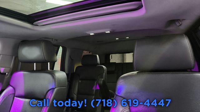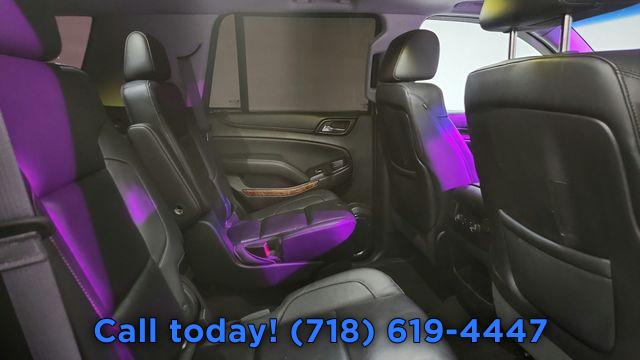 Navigation System, Magnetic Ride Control Suspension Package, 10 Speakers, AM/FM radio: SiriusXM, Bose Centerpoint Premium 10-Speaker Surround Sound, CD player, Premium audio system: Chevrolet MyLink, Radio: Chevrolet MyLink w/Navigation/AM/FM Stereo, Single-Slot CD/MP3 Player, SiriusXM Satellite Radio, Air Conditioning, Automatic temperature control, Front dual zone A/C, Rear air conditioning, Rear window defroster, 5 12-Volt Auxiliary Power Outlets, 6-Way Power Front Passenger Seat Adjuster, Hands Free Power Liftgate, Heated 2nd Row Seats, Memory seat, Memory Settings, Pedal memory, Power driver seat, Power steering, Power windows, Power-Adjustable Accelerator & Brake Pedals, Remote Keyless Entry, Remote keyless entry, Steering wheel memory, Steering wheel mounted audio controls, Universal Home Remote, Adaptive suspension, Power Tilt & Telescoping Steering Column, Speed-sensing steering, Traction control, 4-Wheel Antilock Disc Brakes, 4-Wheel Disc Brakes, ABS brakes, Dual front impact airbags, Dual front side impact airbags, Emergency communication system: OnStar, Front anti-roll bar, Front wheel independent suspension, Low tire pressure warning, Occupant sensing airbag, Overhead airbag, Passive Entry System, Push Button Keyless Start, Rear anti-roll bar, Power Liftgate, Brake assist, Electronic Stability Control, Lane Departure Warning System, Exterior Parking Camera Rear, Front & Rear Parking Assist, Auto High-beam Headlights, Delay-off headlights, Fog Lamps, Front fog lights, Fully automatic headlights, High-Intensity Discharge Headlights, IntelliBeam Headlamps, Driver Inboard & Front Passenger Airbags, Panic alarm, Safety Alert Driver Seat, Security system, Unauthorized Entry Electrical Theft Deterrent Sys., Electronic Cruise Control w/Set & Resume Speed, Speed control, 2-Speed Active Electronic AutoTrac Transfer Case, Auto-dimming door mirrors, Black Assist Steps w/Chrome Accent Strip, Bodyside moldings, Bumpers: body-color, Heated door mirrors, Power door mirrors, Power-Folding Heated Outside Mirrors, Roof rack: rails only, Spoiler, Turn signal indicator mirrors, 1st & 2nd Row Color-Keyed Carpeted Floor Mats, Adjustable pedals, Apple CarPlay, Auto-Dimming Inside Rear-View Mirror, Auto-dimming Rear-View mirror, Color-Keyed Carpeting Floor Covering, Compass, Driver door bin, Driver vanity mirror, Enhanced Driver Instrument Information Display, Floor Console, Forward Collision Alert Sensor Indicator, Front reading lights, Garage door transmitter, Heated Leather Wrapped Steering Wheel, Heated steering wheel, Illuminated entry, Lane Keep Assist, OnStar Basic Plan For 5 Years, Outside temperature display, Overhead console, Passenger vanity mirror, Rear Cross-Traffic Alert, Rear reading lights, Side Blind Zone Alert w/Lane Change Alert, Tachometer, Telescoping steering wheel, Tilt steering wheel, Trip computer, Voltmeter, Wireless Charging, 3rd Row 60/40 Power Fold Split-Bench, 3rd row seats: split-bench, Front Bucket Seats, Front Center Armrest, Front Heated Reclining Bucket Seats, Heated & Cooled Driver & Front Passenger Seats, Heated front seats, Heated rear seats, Perforated Leather-Appointed Seat Trim, Power passenger seat, Power Release 2nd Row Bucket Seats, Split folding rear seat, Ventilated front seats, Passenger door bin, Roof-Mounted Luggage Rack Side Rails, Integrated Trailer Brake Controller, Alloy wheels, Wheels: 20" x 9" Polished-Aluminum, Rain sensing wipers, Rear window wiper, Variably intermittent wipers, 3.08 Rear Axle Ratio