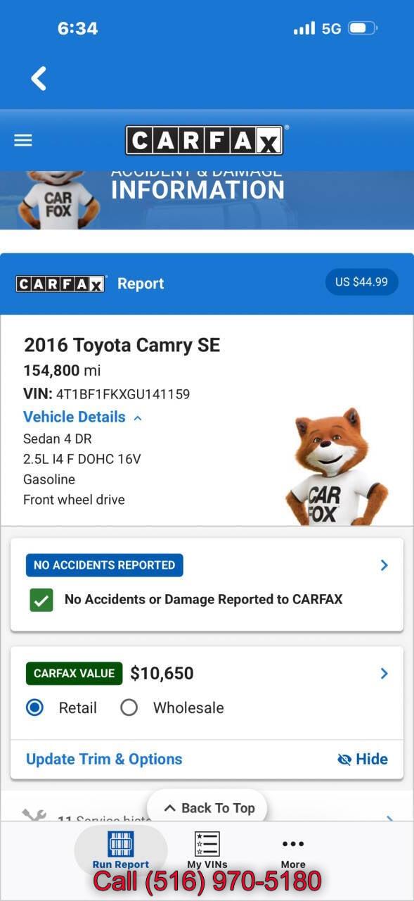 For more information on this 2016 Toyota Camry, please call Car Father at (516) 970-5180 or with the contact form on this page. This vehicle's vin number is 4T1BF1FKXGU141159 and is recorded as being in stock at Car Father at 4214 Austin Blvd in Island Park. See all cars from this dealership.