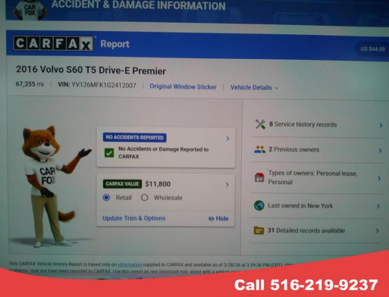 For more information on this 2016 Volvo S60, please call South Shore Auto Brokers at (516) 219-9237 or with the contact form on this page. This vehicle's vin number is YV126MFK1G2412007 and is recorded as being in stock at South Shore Auto Brokers at 104 Stone Blvd in Massapequa. See all cars from this dealership.