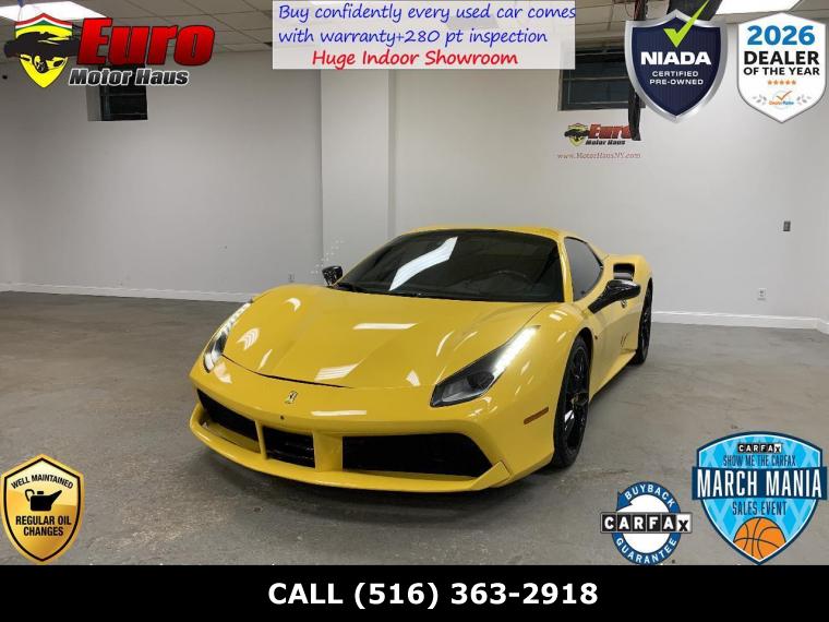 Introducing the breathtaking 2017 Ferrari 488 Spider, a true work of art with just 17,823 meticulously maintained miles and a flawless condition that guarantees to amaze. This spectacular convertible features a striking Giallo Modena Yellow exterior coupled with a luxurious black interior adorned with captivating yellow stitching. Underneath the bonnet resides a ferocious Twin Turbo 3.9L Mid-Mounted V-8 Engine, unleashing a staggering 661 horsepower at 8000 RPM, seamlessly managed by the 7-Speed F1 Dual Clutch Transmission. This exotic sports car seamlessly integrates safety and technology, incorporating advanced features like the Manettino Steering Wheel, Rear Parking Sensors, and SCM3 Magnetic Suspension Damping.This exceptional Ferrari 488 Spider is further complemented by an array of additional options, elevating the driving experience to new heights. Notable among these enhancements are Apple CarPlay ($4,219), AFS System ($2,169), Yellow Brake Calipers ($1,516), Daytona Style Seats ($4,049), Suspension Lifter ($5,062), Horse Stitched on Headrest ($1,266), Colored Mats with Logo ($1,348), Heat Insulating Windscreen ($1,179), Carbon Fiber Steering Wheel with LEDs ($5,062), 'SCUDERIA FERRARI' Shields ($1,711), Front and Rear Parking Cameras ($6,074), and a Passenger Display ($4,219).What sets this car apart is the custom-built titanium exhaust system, meticulously crafted by Capristo Exhaust, which adds an additional layer of uniqueness and performance to this masterpiece, valued at a remarkable $15,000. Moreover, the factory exhaust system is also included, giving you the choice to tailor the exhaust note to your preference.With these exceptional options totaling an additional $21,568 and an Original MSRP totaling an astonishing $344,092, this Ferrari promises an unparalleled driving experience. Don't miss the chance to own this stunning automotive masterpiece schedule a test drive today and experience the thrill of Italian excellence firsthand! ? Call (516) 363-2918 prior to your visit for special internet pricing and quick answers to your questions ? to see more pictures of this vehicle or stop in person and view our large variety of certified pre owned luxury vehicles at 305 East Shore Road Great Neck NY 11023 or call us at (516) 363-2918 today to schedule your test drive. We are a FRANCHISE Affiliated Luxury Pre-Owned Car dealership connected to over 4 Franchise Dealerships. What that means for you is that we have ability to obtain you low rate financing through our major lending institutions. Wells Fargo TD Bank Capital One Bank Bank of America US Bank Exeter auto finance Chase Automotive Ally Financial Santander Key Bank all NY based credit unions and many more.The benefits of which are then transferred to our clientele. We are able to offer FRANCHISE finance rates up to 84 months. With our affiliation we are also permitted to sell New Car Service Contracts here with our CERTIFIED PRE-OWNED PROGRAM backed by SafeGuard and GWC and NIADA Warrantech . Come in and have our friendly and knowledgeable staff facilitate your needs. Euro Motor Haus Inc does not guarantee any ad disclaimer guarantees etc on any 3rd party website.Please note that the advertised price does not include sales tax registration DMV transportation of vehicle costs incurred by the dealer as for safety including but not limited to brakes tires and fluids and any additional fees required by law. Prices exclude any additional charges included with the cost of closing including any governmental charges and taxes any finance charges documentation preparation or warranty. The advertised price represents the vehicle in its current condition and subject to change depending on any additional costs incurred or market fluctuations. Inventory prices are liable to change without warning. Vehicles are offered on a first come first serve basis. Please call to inquire. Advertised price includes all dealer rebates and incentives but not inclusive of certification & dealer prep. We make every attempt to adequately represent the condition and features of all inventory including vehicle information pictures pricing and status but there may be inaccuracies. Updates may be delayed. Dealer assumes no responsibility for inaccuracies in online information. All internet special prices expire at 11:59 pm today. Must present offer prior to expiration.All of our vehicles go through a rigorous Safeguard/ GWC & NIADA certified and backed inspection. They Are pre certified. You work you drive!!! Instant financing available!!! We have great relationships with many lending institutions and we are the Home of the Guaranteed Approval.All finance deals are subject to primary lender approval. Challenged credit no credit no problem! PRICES MAY DIFFER WITH PAYMENT OPTIONS. **Many are 1 owner or off lease vehicles. **Free Vehicle History Reports **100% TOTALLY Indoor Facility **Nationwide Financing available **Extended Service Contracts available **Our cars under 100k miles all come with at least a 30 day warranty standard **Many are out of state clean cars **Trade ins welcomed **No Haggle Pricing!