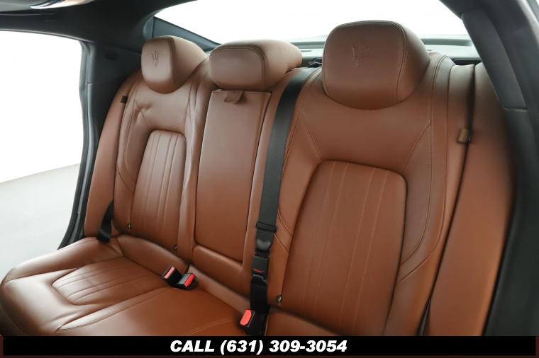 4-Wheel Disc Brakes, 8 Speakers, 8-Way Power Heated Front Comfort Seats, ABS brakes, Air Conditioning, Alloy wheels, AM/FM radio, Anti-whiplash front head restraints, Apple CarPlay/Android Auto, Auto High-beam Headlights, Auto-dimming door mirrors, Auto-dimming Rear-View mirror, Automatic temperature control, Brake Assist, Bumpers: body-color, Compass, Delay-off headlights, Driver door bin, Driver Vanity Mirror, Dual front impact airbags, Dual front side impact airbags, Electronic Stability Control, Exterior Parking Camera Rear, Four wheel independent suspension, Front anti-roll bar, Front beverage holders, Front Bucket Seats, Front Center Armrest w/Storage, Front dual zone A/C, Front reading lights, Garage door transmitter, Genuine wood console insert, Genuine wood door panel insert, Headlight cleaning, Heated door mirrors, Heated front seats, High intensity discharge headlights: Bi-Xenon, Illuminated entry, Knee airbag, Leather Shift Knob, Leather Steering Wheel, Leather Upholstery, Low tire pressure warning, Memory seat, Navigation System, Occupant sensing airbag, Open Pore Radica Wood Trim, Outside temperature display, Overhead airbag, Overhead console, Panic alarm, Passenger door bin, Passenger Vanity Mirror, Power door mirrors, Power Driver Seat, Power moonroof, Power Passenger Seat, Power Steering, Power Windows, Radio data system, Radio: Maserati Touch Control Plus, Rain Sensing Wipers, Rear anti-roll bar, Rear fog lights, Rear reading lights, Rear window defroster, Remote keyless entry, Security System, Speed control, Speed-sensing steering, Speed-Sensitive Wipers, Split folding rear seat, Steering wheel memory, Steering wheel mounted audio controls, Tachometer, Telescoping steering wheel, Tilt steering wheel, Traction Control, Trip Computer, Turn signal indicator mirrors, Variably intermittent wipers, Voltmeter, Wheels: 19 Poseidone Alloy