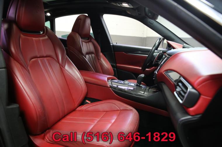 2018 Maserati Levante Q4 finished with a Nero Metallic exterior and Red leather interior. Driven 60,418 careful miles since new. Options on this Levante include the Q4 All Wheel Drive System, Dual Pane Panoramic Roof, Factory Navigation System, Rear Backup Camera, 21 Inch Wheels, Red Calipers, Lane Change Assist, Carbon Fiber Trim Package, Trident Logos in the Headrests and much more. This Levante Q4 just underwent a complete oil and fluid service within the last 20 miles and it drives even better than it looks. The twin-turbocharged 6 cylinder engine is strong and powerful and the automatic transmission shifts effortlessly through all of the gears. The steering is tight and precise and the brakes feel just great. All of the electronics work perfectly and the air conditioning is ice cold. This really is a fantastic Levante to drive. The interior is really nice. The rare Red leather seats are in remarkable condition (see pictures) showing just minimal wear to the seats. The dashboard is like new (looks great with the factory navigation system) and even the carpets don't look or feel like they have been stepped on thanks to the floor mats that have been protecting them. The exterior is what really sets this particular Levante apart from the rest. The Nero Metallic paint is in fantastic condition (see pictures) with no major scratches or dings anywhere at all. The paint is bright and shiny with plenty of luster. Add the optional 21 inch wheels mounted on great tires and this Levante really does look special. The 2017 Maserati Levante really is the ultimate sport utility vehicle. It has fantastic looks and performance, the Q4 all wheel drive system for all weather and road conditions along with all of Maserati's legendary safety, luxury and reliability. The only real apologies are a few typical nicks and chips (see pictures) that are to be expected on any used car. Please feel free to call me (Matt 516-646-1829) with any additional questions you may have.
