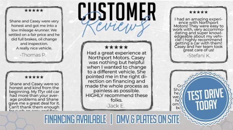 Welcome to Northport Motors! Looking for a reliable, clean, and fully inspected vehicle you can feel confident driving? Every car at Northport Motors is hand-selected and ideal for daily commuting, weekend trips, running your business from the wheels up, and everything in between. Whether you