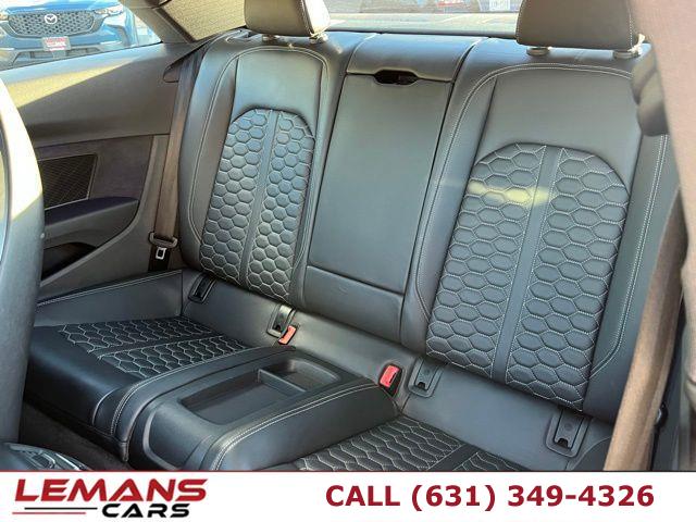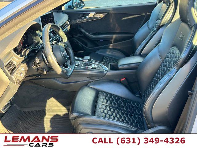 ABS, 4-Wheel Disc Brakes, 8-Speed A/T, A/C, A/T, Adjustable Steering Wheel, Security System, All Wheel Drive, Aluminum Wheels, AM/FM Stereo, Transmission w/Dual Shift Mode, Automatic Headlights, Auxiliary Audio Input, Back-Up Camera, Blind Spot Monitor, Brake Assist, Bucket Seats, Climate Control, Temporary Spare Tire, Cruise Control, Daytime Running Lights, Driver Air Bag, Driver Illuminated Vanity Mirror, Driver Vanity Mirror, Multi-Zone A/C, Auto-Dimming Rearview Mirror, Stability Control, Fog Lamps, Floor Mats, Gasoline Fuel, Headlights-Auto-Leveling, Heated Front Seat(s), Heated Mirrors, Integrated Turn Signal Mirrors, Intermittent Wipers, Keyless Entry, Keyless Start, Knee Air Bag, Lane Departure Warning, Leather Seats, Leather Steering Wheel, Mirror Memory, MP3 Player, Telematics, Pass-Through Rear Seat, Passenger Air Bag, Passenger Air Bag Sensor, Passenger Illuminated Visor Mirror, Passenger Vanity Mirror, Power Door Locks, Power Mirror(s), Power Driver Seat, Power Folding Mirrors, Power Passenger Seat, Power Steering, Sun/Moonroof, Power Windows, Rear Bucket Seats, Rain Sensing Wipers, Rear A/C, Rear Defrost, Rear Head Air Bag, Rear Parking Aid, Rear Spoiler, Requires Subscription, Satellite Radio, Seat Memory, Seat-Massage, Front Side Air Bag, Front Head Air Bag, Smart Device Integration, Steering Wheel Audio Controls, Generic Sun/Moonroof, Tire Pressure Monitor, Tires - Front Performance, Tires - Rear Performance, Traction Control, Trip Computer, Turbocharged, Universal Garage Door Opener, V6 Cylinder Engine, Variable Speed Intermittent Wipers, Engine Immobilizer, Bluetooth Connection, Aluminum Side Windows Trim and Black Front Windshield Trim, Black Bodyside Insert, Black Grille w/Metal-Look Surround, Body-Colored Door Handles, Body-Colored Front Bumper w/Metal-Look Bumper Insert, Body-Colored Rear Bumper w/Metal-Look Bumper Insert, Clearcoat Paint, Compact Spare Tire Mounted Inside Under Cargo, Express Open/Close Sliding And Tilting Glass 1st Row Sunroof w/Power Sunshade, Fixed Rear Window w/Defroster, Front Fog Lamps, Front License Plate Bracket, Galvanized Steel/Aluminum Panels, LED Brakelights, Light Tinted Glass, Lip Spoiler, Metal-Look Power Heated Auto Dimming Side Mirrors w/Power Folding and Turn Signal Indicator, Perimeter/Approach Lights, Programmable Aero-Composite Led Low/High Beam Daytime Running Auto-Leveling Headlamps w/Washer and Delay-Off, Speed Sensitive Rain Detecting Variable Intermittent Wipers, Steel Spare Wheel, Tires: 265/35R19 Summer Performance, Trunk Rear Cargo Access, Wheels w/Silver Accents, Wheels: 19" 10-Spoke Forged Star Design, 10-Way Driver Seat -inc: Power Rear Seat Easy Entry, 10-Way Passenger Seat -inc: Power Rear Seat Easy Entry, 2 Seatback Storage Pockets, 3 12V DC Power Outlets, 40-20-40 Folding Bucket Front Facing Fold Forward Seatback Rear Seat, Air Filtration, Alcantara Simulated Suede Door Trim Insert, Audi connect CARE Tracker System, Cargo Space Lights, Carpet Floor Trim and Carpet Trunk Lid/Rear Cargo Door Trim, Compass, Cruise Control, Day-Night Auto-Dimming Rearview Mirror, Delayed Accessory Power, Digital Display, Door Mirrors, Driver And Passenger Visor Vanity Mirrors w/Driver And Passenger Illumination, Driver Foot Rest, Dual Zone Front Automatic Air Conditioning, Engine Immobilizer, Fade-To-Off Interior Lighting, Fixed Front Head Restraints and Manual Adjustable Rear Head Restraints, Fixed Rear Windows, FOB Controls -inc: Trunk/Hatch/Tailgate, Windows and Sunroof/Convertible Roof, Front And Rear Map Lights, Front Cupholder, Full Carpet Floor Covering -inc: Carpet Front And Rear Floor Mats, Full Cloth Headliner, Full Floor Console w/Covered Storage, Mini Overhead Console and 3 12V DC Power Outlets, Gauges -inc: Speedometer, Odometer, Engine Coolant Temp, Tachometer, Oil Level, Trip Odometer and Trip Computer, Heated S Sport Front Seats -inc: 8-way power front seats, 4-way power lumbar, driver memory, power side bolsters and massage function, HomeLink Garage Door Transmitter, HVAC -inc: Underseat Ducts and Console Ducts, Illuminated Locking Glove Box, Interior Trim -inc: Aluminum Instrument Panel Insert, Aluminum Door Panel Insert, Leather/Simulated Suede Console Insert and Metal-Look Interior Accents, Leather Steering Wheel, Leather/Alcantara Seating Surfaces -inc: RS embossing and diamond stitching, Leather/Aluminum Gear Shift Knob, Manual Tilt/Telescoping Steering Column, Outside Temp Gauge, Perimeter Alarm, Power 1st Row Windows w/Driver And Passenger 1-Touch Up/Down, Power Door Locks w/Autolock Feature, Power Fuel Flap Locking Type, Rear Cupholder, Rear HVAC w/Separate Controls, Redundant Digital Speedometer, Refrigerated/Cooled Box Located In The Glovebox, Driver And Passenger Door Bins, Remote Keyless Entry w/Integrated Key Transmitter, 2 Door Curb/Courtesy, Illuminated Entry, Illuminated Ignition Switch and Panic Button, Remote Releases -Inc: Power Cargo Access, Sliding Front Center Armrest and Rear Center Armrest w/Storage, Systems Monitor, Trip Computer, Valet Function, 15.3 Gal. Fuel Tank, 150 Amp Alternator, 3.20 Axle Ratio, 79-Amp/Hr 420CCA Maintenance-Free Battery w/Run Down Protection, Driver Control Ride Control Sport Tuned Suspension, Electric Power-Assist Speed-Sensing Steering, Engine Auto Stop-Start Feature, Engine Oil Cooler, Engine: 2.9L TFSI 6 Cylinder 444 HP -inc: Audi advanced key (keyless engine start-stop and entry), Front And Rear Anti-Roll Bars, Full-Time All-Wheel Drive, Gas-Pressurized Shock Absorbers, Multi-Link Front Suspension w/Coil Springs, Multi-Link Rear Suspension w/Coil Springs, Quasi-Dual Stainless Steel Exhaust w/Polished Tailpipe Finisher, Regenerative 4-Wheel Disc Brakes w/4-Wheel ABS, Front And Rear Vented Discs, Brake Assist, Hill Hold Control and Electric Parking Brake, Transmission w/Driver Selectable Mode, Transmission: 8-Speed Tiptronic Automatic -inc: 3-spoke flat-bottom steering wheel w/shift paddles and RS badge, ABS And Driveline Traction Control, Airbag Occupancy Sensor,