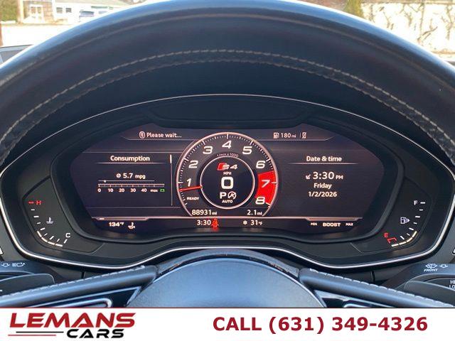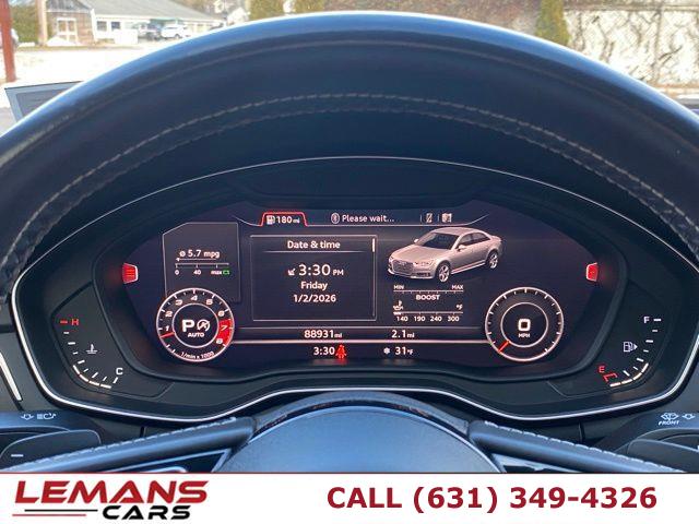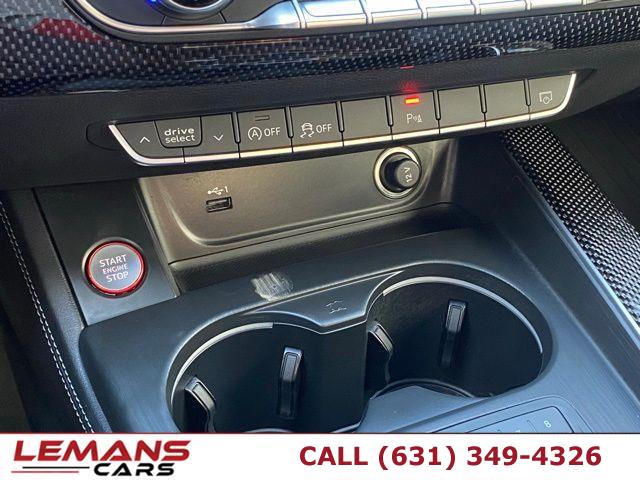 ABS, 4-Wheel Disc Brakes, 8-Speed A/T, A/C, A/T, Adjustable Steering Wheel, Security System, All Wheel Drive, Aluminum Wheels, AM/FM Stereo, Transmission w/Dual Shift Mode, Automatic Headlights, Auxiliary Audio Input, Back-Up Camera, Brake Assist, Bucket Seats, CD Player, Child Safety Locks, Climate Control, Temporary Spare Tire, Cruise Control, Daytime Running Lights, Driver Air Bag, Driver Illuminated Vanity Mirror, Driver Adjustable Lumbar, Driver Vanity Mirror, Multi-Zone A/C, Auto-Dimming Rearview Mirror, Stability Control, Fog Lamps, Front Collision Mitigation, Floor Mats, Gasoline Fuel, Hands-Free Liftgate, HD Radio, Headlights-Auto-Leveling, Heated Front Seat(s), Heated Mirrors, Integrated Turn Signal Mirrors, Intermittent Wipers, Keyless Entry, Keyless Start, Knee Air Bag, Leather Seats, Leather Steering Wheel, LED Headlights, Mirror Memory, MP3 Capability, Navigation System, Telematics, Pass-Through Rear Seat, Passenger Air Bag, Passenger Air Bag Sensor, Passenger Illuminated Visor Mirror, Passenger Adjustable Lumbar, Passenger Vanity Mirror, Power Door Locks, Power Mirror(s), Power Driver Seat, Power Folding Mirrors, Power Passenger Seat, Power Steering, Sun/Moonroof, Power Windows, Premium Sound System, Rain Sensing Wipers, Rear A/C, Rear Bench Seat, Rear Collision Mitigation, Rear Defrost, Rear Head Air Bag, Rear Parking Aid, Rear Spoiler, Requires Subscription, Satellite Radio, Seat Memory, Seat-Massage, Front Side Air Bag, Front Head Air Bag, Smart Device Integration, Steering Wheel Audio Controls, Generic Sun/Moonroof, Tire Pressure Monitor, Tires - Front Performance, Tires - Rear Performance, Traction Control, Trip Computer, Turbocharged, Universal Garage Door Opener, V6 Cylinder Engine, Variable Speed Intermittent Wipers, Immobilizer, WiFi Hotspot, Bluetooth Connection, Aluminum Side Windows Trim and Black Front Windshield Trim, Aluminum Wheels w/Silver Accents, Body-Colored Door Handles, Body-Colored Front Bumper, Body-Colored Rear Bumper w/Colored Rub Strip/Fascia Accent and Metal-Look Bumper Insert, Colored Grille w/Chrome Surround, Compact Spare Tire Mounted Inside Under Cargo, Express Open/Close Sliding And Tilting Glass 1st Row Sunroof w/Sunshade, Fixed Rear Window w/Defroster, Front Fog Lamps, Front License Plate Bracket, Front Windshield -inc: Sun Visor Strip, Galvanized Steel/Aluminum Panels, LED Brakelights, Light Tinted Glass, Lip Spoiler, Metal-Look Power Heated Auto Dimming Side Mirrors w/Power Folding and Turn Signal Indicator, Perimeter/Approach Lights, Programmable Projector Beam Led Low/High Beam Daytime Running Auto-Leveling Headlamps w/Delay-Off, Rocker Panel Extensions, Speed Sensitive Rain Detecting Variable Intermittent Wipers w/Heated Jets, Steel Spare Wheel, Tires: P245/40R18 97Y XL Summer, Trunk Rear Cargo Access, Wheels: 8.5" x 18" 5-Double-Spoke-Star Design, 12-Way Driver Seat -inc: Manual Cushion Extension and Power 4-Way Lumbar Support, 12-Way Passenger Seat -inc: Manual Cushion Extension and Power 4-Way Lumbar Support, 2 Seatback Storage Pockets, 3 12V DC Power Outlets, 40-20-40 Folding Bench Front Facing Fold Forward Seatback Rear Seat, Air Filtration, Audi connect CARE Tracker System, Cargo Space Lights, Carpet Floor Trim, Carpet Trunk Lid/Rear Cargo Door Trim and Vinyl/Rubber Mat, Compass, Cruise Control, Day-Night Auto-Dimming Rearview Mirror, Delayed Accessory Power, Driver And Passenger Visor Vanity Mirrors w/Driver And Passenger Illumination, Driver Foot Rest, Driver Information Center, Dual Zone Front Automatic Air Conditioning, Fade-To-Off Interior Lighting, Fixed Front Head Restraints and Manual Adjustable Rear Head Restraints, FOB Controls -inc: Keyfob Cargo Access, Keyfob Window Activation and Keyfob Sunroof/Convertible Roof Activation, Front And Rear Map Lights, Front Seats w/Power 4-Way Driver Lumbar, Full Carpet Floor Covering -inc: Carpet Front And Rear Floor Mats, Full Cloth Headliner, Full Floor Console w/Storage, Mini Overhead Console w/Storage and 3 12V DC Power Outlets, Gauges -inc: Speedometer, Odometer, Engine Coolant Temp, Tachometer, Oil Level, Trip Odometer and Trip Computer, Heated 3-Step Front S Sport Seats -inc: 8-way power front seats, 4-way power lumbar adjustment (w/driver memory), power side bolsters and massage function, HomeLink Garage Door Transmitter, HVAC -inc: Underseat Ducts and Console Ducts, Illuminated Front Cupholder, Illuminated Glove Box, Immobilizer, Integrated Navigation System w/Voice Activation, Interior Trim -inc: Aluminum Instrument Panel Insert, Aluminum Door Panel Insert, Aluminum Console Insert and Chrome/Aluminum Interior Accents, Leather Door Trim Insert, Leather/Alcantara Seat Trim -inc: diamond stitching, Leather/Aluminum Gear Shifter Material, Manual Tilt/Telescoping Steering Column, Memory Settings -inc: Driver Seat and Door Mirrors, Mobile Hotspot Internet Access, Outside Temp Gauge, Perimeter Alarm, Power 1st Row Windows w/Front And Rear 1-Touch Up/Down, Power Door Locks w/Autolock Feature, Power Fuel Flap Locking Type, Power Rear Windows, Proximity Key For Doors And Push Button Start, Rear Cupholder, Rear HVAC w/Separate Controls, Redundant Digital Speedometer, Refrigerated/Cooled Box Located In The Glovebox, Driver / Passenger And Rear Door Bins, Remote Keyless Entry w/Integrated Key Transmitter, 4 Door Curb/Courtesy, Illuminated Entry and Panic Button, Remote Releases -Inc: Proximity Cargo Access, Sliding Front Center Armrest and Rear Center Armrest w/Storage, Smart Device Integration, Sport Leather Steering Wheel, Trip Computer, Valet Function, 15.3 Gal. Fuel Tank, 2.85 Axle Ratio, 4-Wheel Disc Brakes w/4-Wheel ABS, Front And Rear Vented Discs, Brake Assist, Hill Hold Control and Electric Parking Brake, 79-Amp/Hr 420CCA Maintenance-Free Battery w/Run Down Protection, Dual Stainless Steel Exhaust w/Chrome Tailpipe Finisher, Electric Power-Assist Speed-Sensing Steering, Engine Auto Stop-Start Feature, Engine Oil Cooler, Engine: 3.0L TFSI Twin-Scroll Turbo DOHC V6 -inc: Audi va