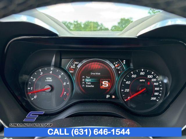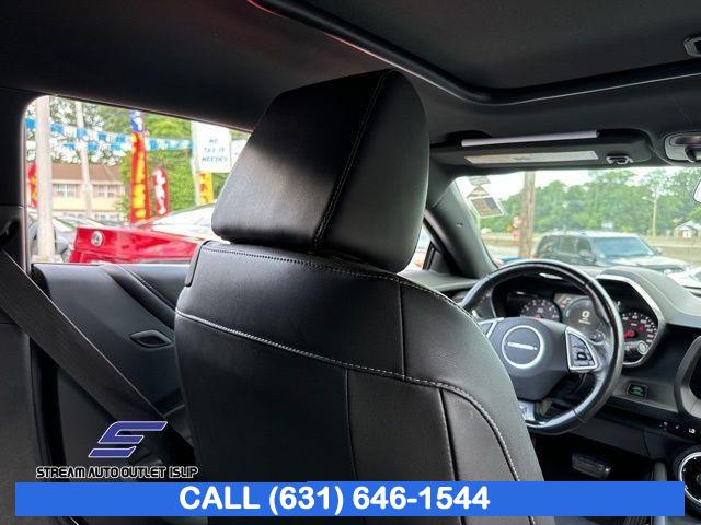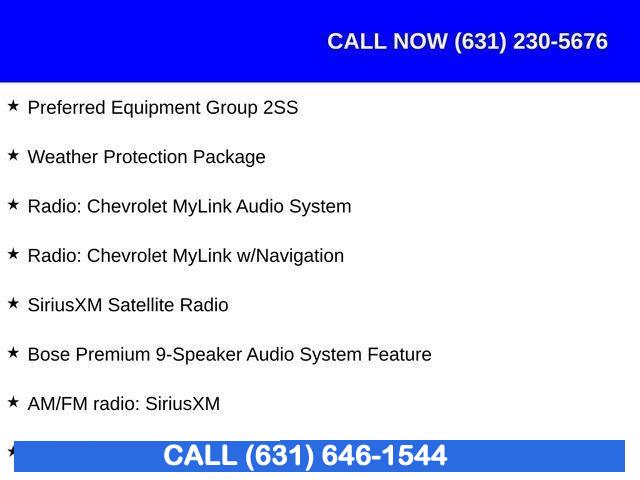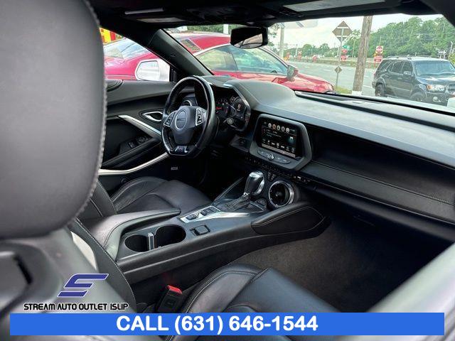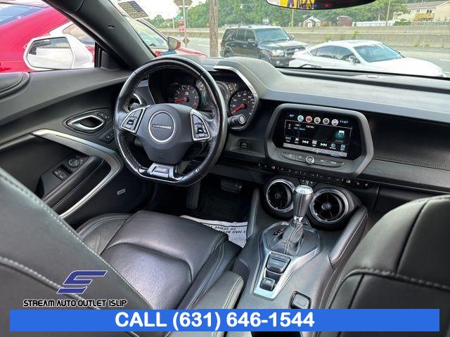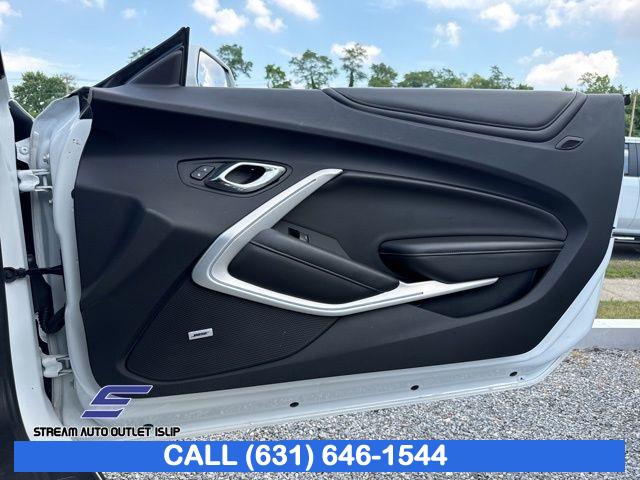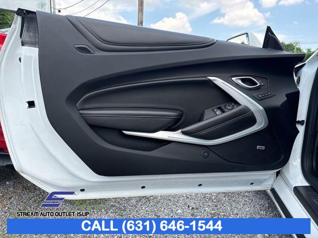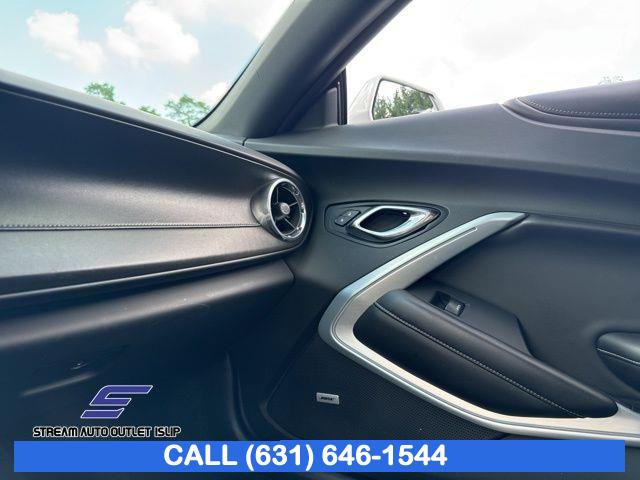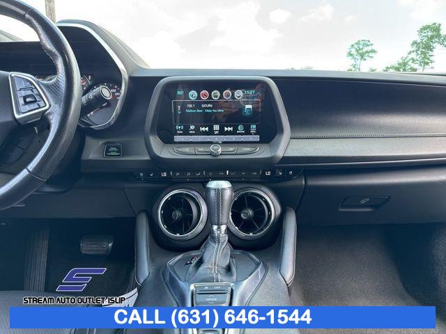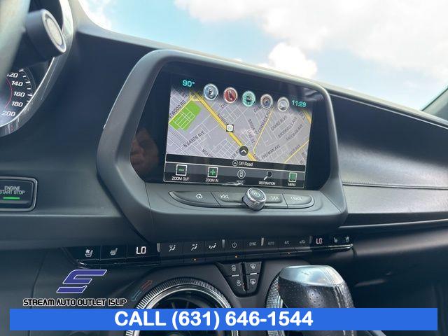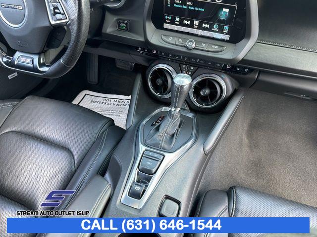 Preferred Equipment Group 2SS, Weather Protection Package, 9 Speakers, AM/FM radio: SiriusXM, Bose Premium 9-Speaker Audio System Feature, Premium audio system: Chevrolet MyLink, Radio data system, Radio: Chevrolet MyLink Audio System, Radio: Chevrolet MyLink w/Navigation, SiriusXM Satellite Radio, Air Conditioning, Automatic temperature control, Front dual zone A/C, Rear window defroster, 6-Way Power Front Passenger Seat Adjuster, 8-Way Power Driver Seat Adjuster, Heads-Up Display, Memory seat, Power driver seat, Power steering, Power windows, Remote keyless entry, Remote Vehicle Starter System, Steering wheel mounted audio controls, Four wheel independent suspension, Speed-sensing steering, Traction control, 4-Wheel Disc Brakes, ABS brakes, Dual front impact airbags, Dual front side impact airbags, Emergency communication system: OnStar Guidance, Front anti-roll bar, Knee airbag, Low tire pressure warning, Occupant sensing airbag, Overhead airbag, Rear anti-roll bar, Power Sunroof, Brake assist, Electronic Stability Control, Exterior Parking Camera Rear, Delay-off headlights, Front fog lights, Fully automatic headlights, High-Intensity Discharge Headlights, Dual Mode Performance Exhaust, Panic alarm, Security system, Speed control, Auto-dimming door mirrors, Body Color Painted Splash Guards (LPO), Bumpers: body-color, Front License Plate Bracket, Heated door mirrors, Paddle-Shift Manual Controls, Spoiler, 2 USB Ports & Auxiliary Input Jack, All-Weather Cargo Mat w/Camaro Logo (LPO), All-Weather Floor Mats, Apple CarPlay/Android Auto, Auto-dimming Rear-View mirror, Compass, Driver door bin, Driver vanity mirror, Front reading lights, Garage door transmitter, Heated steering wheel, Illuminated entry, Leather Shift Knob, Outside temperature display, Passenger vanity mirror, Tachometer, Telescoping steering wheel, Tilt steering wheel, Trip computer, Voltmeter, Front Bucket Seats, Front Center Armrest, Front Sport Bucket Seats, Heated Driver & Front Passenger Seats, Heated front seats, Leather-Trimmed Seat Trim, Power passenger seat, Ventilated Driver & Front Passenger Seats, Ventilated front seats, Passenger door bin, Alloy wheels, Wheels: 20" x 8.5" Fr & 20" x 9.5" Rr 5-Spoke Alum