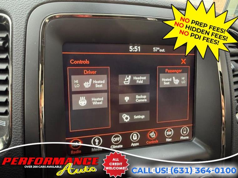 Loaded! 2018 Dodge Durango GT AWD! Preferred Package 2BC with Performance Front Grill and Fascia! Factory Sport Hood! Premium Group! Safety and Security Group! and MORE! Runs and Drives Great! Come in for a Test Drive! REMEMBER THE PERFORMANCE AUTO DIFFERENCE - NO PREP FEES! NO HIDDEN FEES! With apologies to all our customers, past and future: All of our competitors advertise cars using price structures that get their cars seen online, while no one sees ours. And so, after 25 years of business, we have to experiment with THEIR system. Therefore our advertised prices on third-party advertisers reflect a $2500 down payment or equivalent trade. It is NOT a HIDDEN FEE: we are completely up front and honest about why we have to try it. Our website clearly states the pricing on every vehicle. Third Party advertisers like Carfax, Cargurus and Autotrader etc. reward this price structure with better placement and badges. We have been asking third party advertisers for many years to give us a level playing field. We always succeed on a level playing field. Our competitors have downpayments between $2500-$9000 or even a % of price, then add hidden fees or require financing through them. Some dealers will not list a downpayment in their ads and you only find out when you go to see the vehicle. With us, financing is not required, but if you prefer to, we work with many banks to get you the best terms. We are sorry for any inconvenience, but pure pricing placed our vehicles at the bottom of search lists. We had no choice but to try advertising their way so that you can at least see our inventory, and hopefully we will do business. We have been selling quality cars with great reviews for 25 years. Our reputation is our strongest quality. We will do everything we can to satisfy you. It is no accident that 30% of our customers are repeat business.