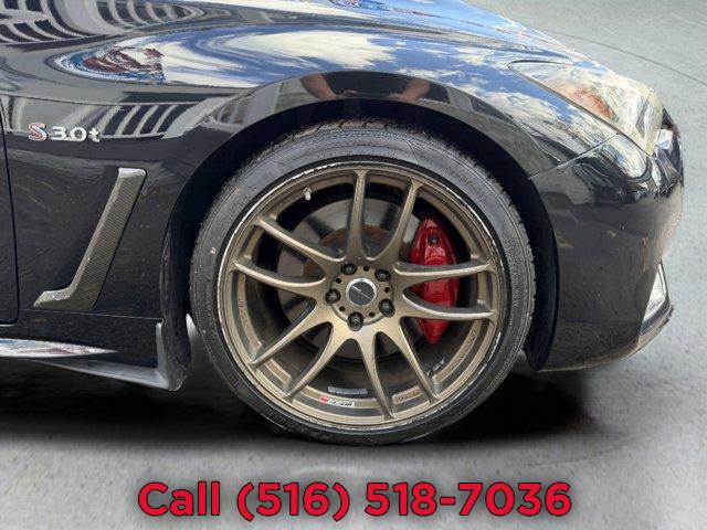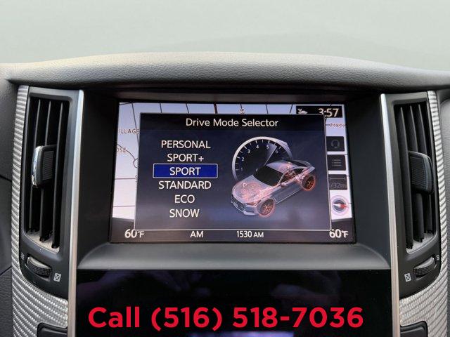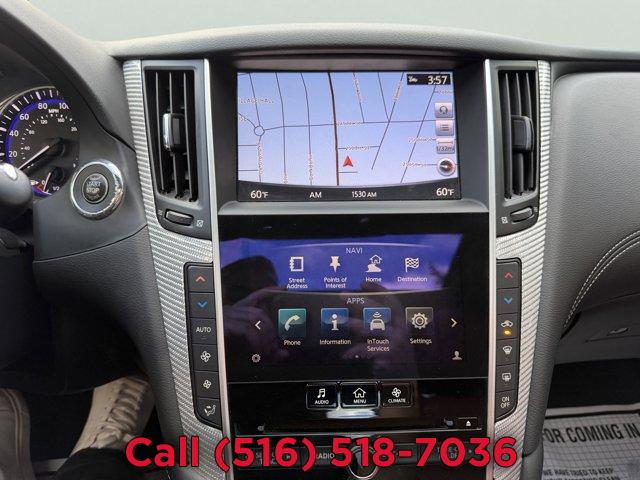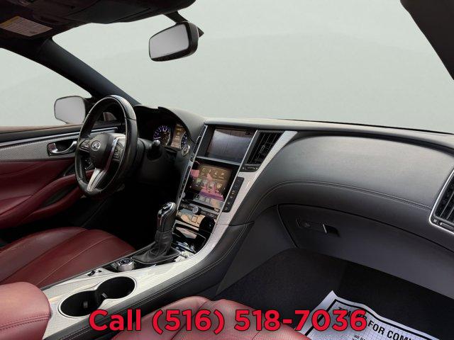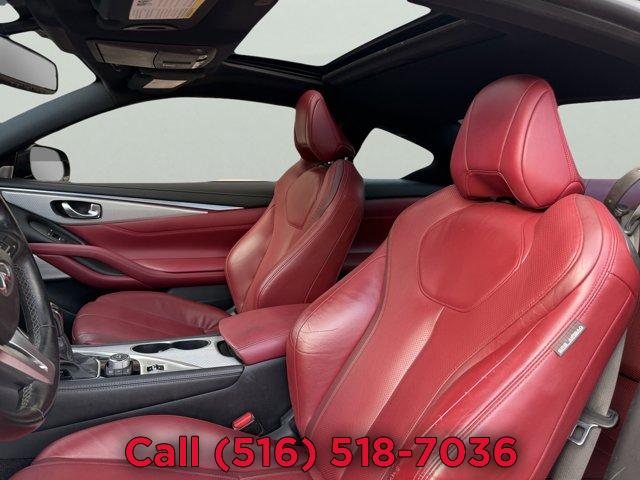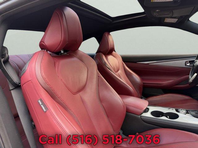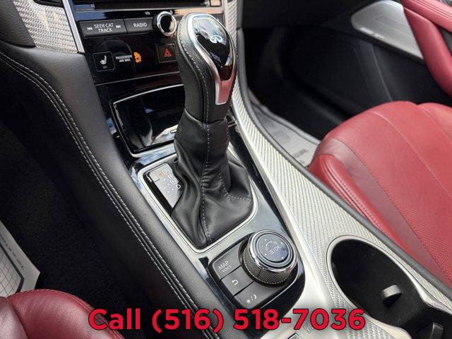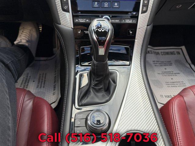 [X03] SILVER OPTIC FIBER INTERIOR TRIM, [P03] SENSORY PACKAGE 3.0T SPORT -inc: Heated Front Seats Remote Engine Start System Heated Steering Wheel INFINITI InTouch Navigation System InTouch services navigation synchronized adaptive shift control SiriusXM Traffic including real-time traffic information and voice recognition for navigation functions including 1-shot voice destination entry, MIDNIGHT BLACK, [Z66] ACTIVATION DISCLAIMER, MONACO RED SEMI-ANILINE LEATHER-APPOINTED SEATING, [S55] LITERATURE KIT, [R92] CARBON FIBER REAR DECKLID SPOILER, Turbocharged, Rear Wheel Drive, Active Suspension, Power Steering, ABS, 4-Wheel Disc Brakes, Brake Assist, Brake Actuated Limited Slip Differential, Aluminum Wheels, Tires - Front Performance, Tires - Rear Performance, Sun/Moonroof, Generic Sun/Moonroof, Heated Mirrors, Power Mirror(s), Integrated Turn Signal Mirrors, Rear Defrost, Intermittent Wipers, Variable Speed Intermittent Wipers, Daytime Running Lights, Automatic Headlights, LED Headlights, Fog Lamps, AM/FM Stereo, CD Player, Premium Sound System, Satellite Radio, MP3 Capability, Steering Wheel Audio Controls, Auxiliary Audio Input, HD Radio, Requires Subscription, MP3 Capability, Auxiliary Audio Input, Bluetooth Connection, Power Driver Seat, Power Passenger Seat, Bucket Seats, Driver Adjustable Lumbar, Seat Memory, Rear Bench Seat, Adjustable Steering Wheel, Trip Computer, Leather Steering Wheel, Keyless Entry, Power Door Locks, Keyless Start, Keyless Entry, Power Door Locks, Remote Trunk Release, Universal Garage Door Opener, Cruise Control, Climate Control, Multi-Zone A/C, A/C, Leather Seats, Driver Vanity Mirror, Passenger Vanity Mirror, Driver Illuminated Vanity Mirror, Passenger Illuminated Visor Mirror, Auto-Dimming Rearview Mirror, Floor Mats, Keyless Start, Smart Device Integration, Mirror Memory, Seat Memory, Power Windows, Power Door Locks, Trip Computer, Mirror Memory, Seat Memory, Security System, Immobilizer, Traction Control, Stability Control, Traction Control, Front Side Air Bag, Tire Pressure Monitor, Driver Air Bag, Passenger Air Bag, Front Head Air Bag, Rear Head Air Bag, Passenger Air Bag Sensor, Back-Up Camera