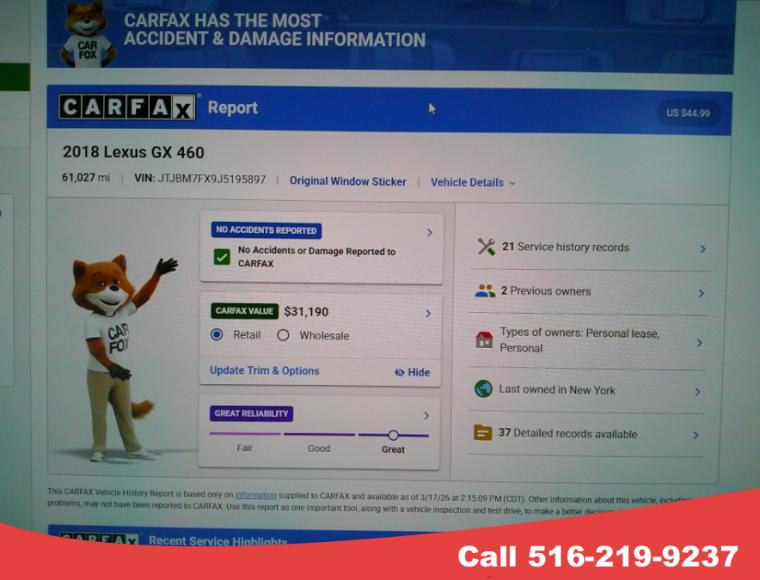 For more information on this 2018 Lexus GX, please call South Shore Auto Brokers at (516) 219-9237 or with the contact form on this page. This vehicle's vin number is JTJBM7FX9J5195897 and is recorded as being in stock at South Shore Auto Brokers at 104 Stone Blvd in Massapequa. See all cars from this dealership.