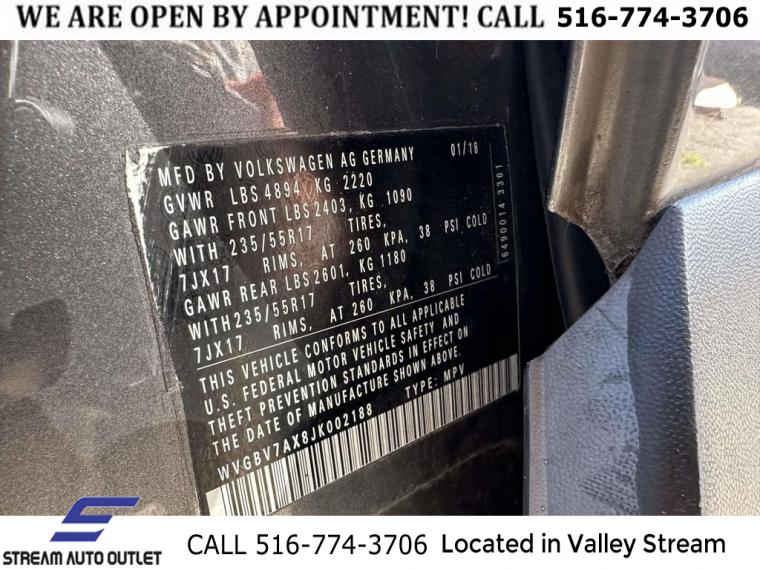 For more information on this 2018 Volkswagen Tiguan Limited, please call Stream Auto Outlet Valley Stream at (516) 774-3706 or with the contact form on this page. This vehicle's vin number is WVGBV7AX8JK002188 and is recorded as being in stock at Stream Auto Outlet Valley Stream at 324 W Merrick Rd in Valley Stream. See all cars from this dealership.