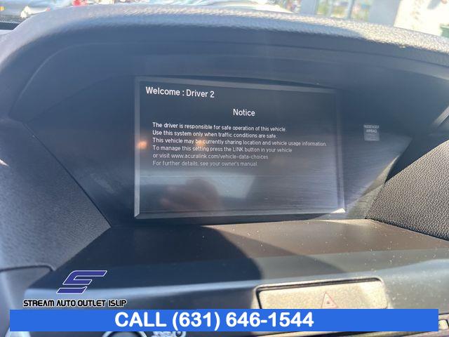 Navigation System, 11 Speakers, AM/FM radio: SiriusXM, Audio memory, CD player, Premium audio system: Acura/ELS Surround, Radio data system, Radio: Acura/ELS Studio Premium Audio System, Rear audio controls, Air Conditioning, Automatic temperature control, Front dual zone A/C, HVAC memory, Rear air conditioning, Rear window defroster, Memory seat, Power driver seat, Power steering, Power windows, Remote keyless entry, Steering wheel memory, Steering wheel mounted audio controls, A/V remote, Headphones, Adaptive suspension, Four wheel independent suspension, Speed-sensing steering, Traction control, 4-Wheel Disc Brakes, ABS brakes, Anti-whiplash front head restraints, Dual front impact airbags, Dual front side impact airbags, Emergency communication system, Front anti-roll bar, Knee airbag, Low tire pressure warning, Occupant sensing airbag, Overhead airbag, Rear anti-roll bar, Power moonroof, Power Liftgate, Brake assist, Electronic Stability Control, Lane departure: Lane Keeping Assist System (LKAS) active, Exterior Parking Camera Rear, Auto High-beam Headlights, Delay-off headlights, Panic alarm, Security system, Speed control, Bumpers: body-color, Heated door mirrors, Power door mirrors, Spoiler, Turn signal indicator mirrors, Apple CarPlay/Android Auto, Auto tilt-away steering wheel, Auto-dimming Rear-View mirror, Compass, Driver door bin, Driver vanity mirror, Front reading lights, Garage door transmitter: HomeLink, Genuine wood console insert, Genuine wood dashboard insert, Genuine wood door panel insert, Illuminated entry, Leather steering wheel, Outside temperature display, Overhead console, Passenger vanity mirror, Rear reading lights, Rear seat center armrest, Tachometer, Telescoping steering wheel, Tilt steering wheel, Trip computer, 3rd row seats: bench, Front Bucket Seats, Front Center Armrest, Heated front seats, Heated Front Sport Seats, Heated rear seats, Perforated Premium Leather w/Contrast Stitching, Power passenger seat, Split folding rear seat, Passenger door bin, Alloy wheels, Wheels: 20" x 8" Shark Gray Twisted 10-Spoke, Rain sensing wipers, Rear window wiper, Speed-Sensitive Wipers, Variably intermittent wipers, 4.33 Axle Ratio, * NYS INSPECTION INCLUDED *, * FULL INTERIOR / EXTERIOR DETAIL *, * BLUETOOTH *, * LIMITED NYS LEMON LAW WARRANTY INCLUDED *, *FRESH OIL CHANGE *, * 150 MULTI POINT INSPECTION *