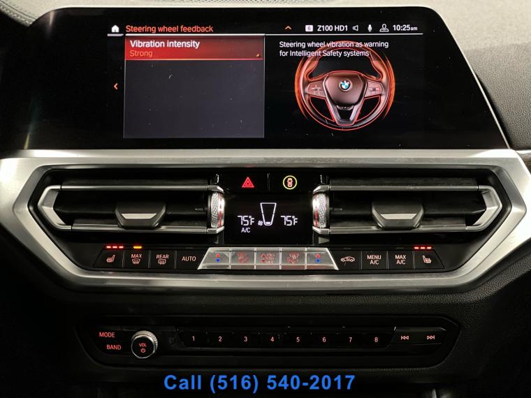 Sunroof/Moonroof, Remote Start, Navigation System, Leather Seats, Heated Seats, Bluetooth, Backup Camera, Seating capacity: 5, Split front seats: Bucket front seats, Driver seat direction: Driver seat with 12-way directional controls, Passenger seat direction: Front passenger seat with 12-way directional controls, Front head restraints: Height and tilt adjustable front seat head restraints, Front head restraint control: Manual front seat head restraint control, Rear seats fixed or removable: Fixed rear seats, Rear seats: Rear bench seat, Rear seat folding position: Fold forward rear seatback, Folding rear seats: 40-20-40 folding rear seats, Rear head restraints: Foldable rear seat head restraints, Rear head restraint control: Manual rear seat head restraint control, Rear head restraint control: 3 rear seat head restraints, Front seatback upholstery: Plastic front seatback upholstery, Door trim insert: Leatherette door trim insert, Headliner material: Cloth headliner material, Headliner coverage: Full headliner coverage, Floor covering: Full carpet floor covering, Floor mats: Carpet front and rear floor mats, Gearshifter material: Leather and metal-look gear shifter material, Door panel insert: Metal-look door panel insert, Interior accents: Metal-look interior accents, Rear seatback upholstery: Carpet rear seatback upholstery, Number of memory settings: 2 memory settings, Climate control: Automatic climate control, Air conditioning: Yes, Dual-zone front climate control: Dual-zone front climate control, Rear climate control: Rear climate control system with separate controls, Cabin air filter: Cabin air filter, Rear under seat ducts: Rear under seat climate control ducts, Residual heat recirculation: Residual heat recirculation, Rear console climate control ducts: Rear console climate control ducts, Steering wheel material: Leather steering wheel, Steering wheel tilt: Manual tilting steering wheel, Steering wheel telescopic: Manual telescopic steering wheel, Tinted windows: Light tinted windows, Armrests rear: Rear seat center armrest, Armrests front center: Sliding front seat center armrest, Sport steering wheel: Sport steering wheel, Floor coverage: Full floor coverage, Passenger doors rear left: Conventional left rear passenger door, Rear cargo door: Trunk, Heated door mirrors: Heated driver and passenger side door mirrors, Door mirror with tilt-down in reverse: Power passenger door mirror with tilt down in reverse, Passenger doors rear right: Conventional right rear passenger door, Visor driver mirror: Driver visor mirror, Visor illuminated driver mirror: Illuminated driver visor mirror, Visor passenger mirror: Passenger visor mirror, Visor illuminated passenger mirror: Illuminated passenger visor mirror, Rearview mirror: Auto-dimming rear view mirror, Beverage holders: Front beverage holders, Rear seat direction: Front facing rear seat, Memory settings: Memory settings include: door mirrors, Floor console: Full floor console, Floor console storage: Covered floor console storage, Glove box: Illuminated locking glove box, Number of beverage holders: 8 beverage holders, Seatback storage pockets: 2 seatback storage pockets, Door bins front: Driver and passenger door bins, Door bins rear: Rear door bins, Cargo floor type: Carpet cargo area floor, Trunk lid trim: Carpet trunk lid trim, Cargo tie downs: Cargo area tie downs, Cargo light: Cargo area light, Concealed cargo storage: Cargo area concealed storage, Steering mounted audio control: Steering wheel mounted audio controls, Cruise control: Cruise control with steering wheel mounted controls, Cargo access: Power cargo area access release, Driver foot rest: Driver foot rest, Accessory power: Retained accessory power, Garage door opener: Garage door opener, 12V power outlets: 3 12V power outlets, Door locks: Power door locks with 2 stage unlocking, Keyfob keyless entry: Keyfob keyless entry, All-in-one key: All-in-one remote fob and ignition key, Auto door locks: Auto-locking doors, Fob engine controls: Smart key with push button start, Interior lock disable: Interior lock disable, Valet key: Valet key, Auto-dimming door mirror driver: Auto-dimming driver side mirror, Fuel door lock: Power fuel door lock, Tailgate control: Tailgate/power door lock, Keyfob cargo controls: Keyfob trunk control, Keyfob window controls: Keyfob window control, Keyfob sunroof controls: Keyfob sunroof/convertible roof control, Tachometer: Tachometer, Engine/electric motor temperature gauge: Engine/electric motor temperature gauge, Clock: Digital clock, Temperature display: Exterior temperature display, Folding door mirrors: Power folding door mirrors, Engine temperature warning: Engine temperature warning, Battery charge warning: Battery charge warning, Low level warnings: Low level warning for oil coolant, fuel, washer fluid and brake fluid, Key in vehicle warning: Key in vehicle warning, Bulb warning: Bulb failure warning, Door ajar warning: Rear cargo area ajar warning, Service interval warning: BMW TeleServices service interval indicator, Oil pressure warning: Oil pressure warning, Brake pad warning: Brake pad wear indicator, Trip computer: Trip computer, First-row windows: Power first-row windows, Second-row windows: Power second-row windows, One-touch down window: Front and rear one-touch down windows, One-touch up window: Front and rear one-touch up windows, Wipers: Variable intermittent front windshield wipers, Speed sensitive wipers: Speed sensitive wipers, Rear window defroster: Rear window defroster, Rear windshield: Fixed rear windshield, Beverage holders rear: Rear beverage holders, Auto-dimming door mirror passenger: Auto-dimming passenger side mirror, Built-in virtual assistant: Built-in virtual assistant, Driver information center: Driver information center, Day/Night rearview mirror: Day/Night rearview mirror, Front reading lights: Front reading lights, Rear reading lights: Rear reading lights, Variable panel light: Variable instrument panel lig