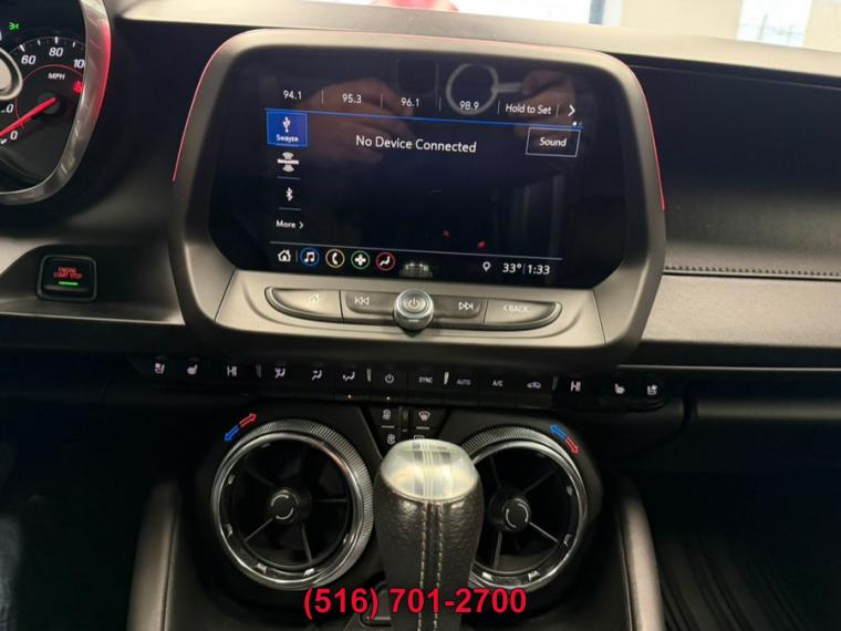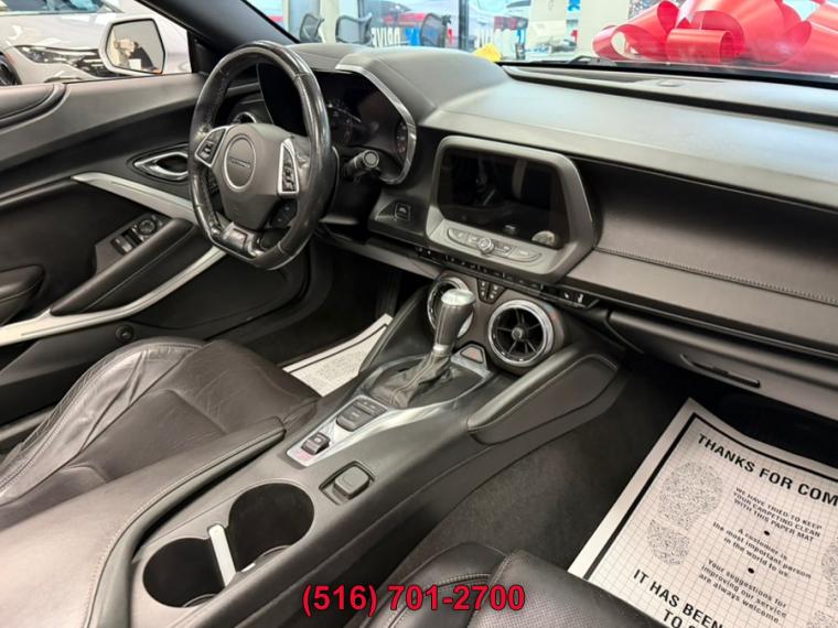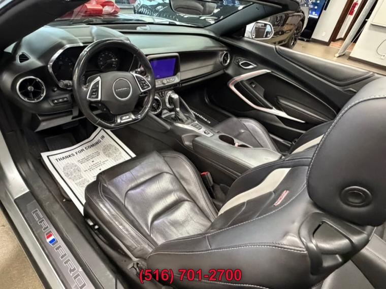 10-Speed A/T, ABS, 4-Wheel Disc Brakes, 8 Cylinder Engine, A/C, A/T, Adjustable Steering Wheel, Security System, Aluminum Wheels, AM/FM Stereo, Auxiliary Audio Input, Back-Up Camera, Blind Spot Monitor, Brake Assist, Bucket Seats, Climate Control, Convertible Soft Top, Cooled Front Seat(s), Cross-Traffic Alert, Cruise Control, Daytime Running Lights, Driver Air Bag, Driver Restriction Features, Driver Vanity Mirror, Multi-Zone A/C, Stability Control, Emergency Trunk Release, Floor Mats, Front Reading Lamps, Gasoline Fuel, Heads-Up Display, Heated Front Seat(s), Heated Mirrors, Heated Steering Wheel, Intermittent Wipers, Keyless Entry, Keyless Start, Knee Air Bag, Leather Seats, Leather Steering Wheel, Locking/Limited Slip Differential, Mirror Memory, MP3 Player, Telematics, Passenger Air Bag, Passenger Air Bag Sensor, Passenger Vanity Mirror, Power Door Locks, Power Mirror(s), Power Driver Seat, Power Passenger Seat, Power Steering, Power Windows, Premium Sound System, Rear Side Air Bag, Rear Defrost, Rear Head Air Bag, Rear Parking Aid, Rear Spoiler, Rear Wheel Drive, Remote Engine Start, Remote Trunk Release, Requires Subscription, Satellite Radio, Seat Memory, Front Side Air Bag, Front Head Air Bag, Smart Device Integration, Tire Pressure Monitor, Tires - Front Performance, Tires - Rear Performance, Traction Control, Variable Speed Intermittent Wipers, WiFi Hotspot, Bluetooth Connection, Convertible top, power-folding, remote control (down only) includes glass rear window with integral defogger, Mirrors, outside heated power-adjustable and driver-side auto-dimming, body-color, Spoiler, rear, stanchion, Tires, 245/40ZR20 front and 275/35ZR20 rear, blackwall, summer-only, run-flat (Do not use summer only tires in winter conditions, as it would adversely affect vehicle safety, performance and durability. Use only GM-approved tire and wheel combinations. Unapproved combinations may change the vehicle's performance characteristics. For important tire, Wheels, 20" x 8.5" (50.8 cm x 21.6 cm) front and 20" x 9.5" (50.8 cm x 24.1 cm) rear bright 5-spoke Silver-painted aluminum, Wipers, front variable-speed, intermittent with washers, Air conditioning, dual-zone automatic climate control with individual climate settings for driver and dedicated passenger controls and outside temperature display, Compass display, Cruise control, electronic with set and resume speed, steering wheel mounted, Cup holders, 2 front, Dead pedal, driver, Defogger, rear-window, electric, Door locks, power programmable with lockout protection, Driver Information Center, enhanced, 8" diagonal multi-color re-configurable display, Floor mats, carpeted front, Glovebox, lockable, Head-Up Display with color digital readouts for vehicle speed, selected gear, G-Force, audio system information, high-beam indicator, compass, outside air temperature, tachometer, vehicle messages, Turn-by-Turn information and phone information, Interior trim, aluminum accents on door trim and shifter cap, Keyless Open and Start includes 2 remote transmitters that enable automatic door unlock and open by touching door switch, Lighting, front reading lamps, Lighting, interior spectrum, 24 different color selections, Power outlet, 1 located on center console, Rear Camera Mirror, Seat adjuster, driver, 8-way power, Seat adjuster, front passenger, 6-way power, Seat, rear fixed, Seats, heated driver and front passenger, Seats, Leather-trimmed front Sport bucket, Seats, ventilated driver and front passenger, Shift knob, leather-wrapped, Sill plates, illuminated, Speedometer, miles/kilometers, Steering column, manual rake and telescopic, Steering wheel, heated, Steering wheel, leather-wrapped, flat-bottom, Theft-deterrent system, electrical, unauthorized entry, Trunk release, power, Visors, driver and front passenger vanity mirrors, Windows, power with driver and passenger Express-Down/Up, Battery rundown protection, Brakes, Brembo 4-piston front and rear, performance, 4-wheel antilock, 4-wheel disc, Cooling system, extra capacity, Cooling, external engine oil cooler, Differential, limited slip, Driver Selector Mode up to 4 modes available for various driving conditions - Snow/Ice, Tour, Sport and Track (SS and ZL1 models only), Engine, 6.2L (376 ci) V8 DI, VVT (455 hp [339.3 kW] @ 6000 rpm, 455 lb-ft of torque [614.3 N-m] @ 4400 rpm), Exhaust, dual-outlet stainless-steel with bright tips, Fueling system, capless, Rear axle, 3.73 ratio (Included with (MN6) 6-speed manual transmission.), Rear wheel drive, Steering, power, variable ratio, electric, Suspension, Performance, Transmission, 6-speed manual (Includes Active Rev Matching.), Airbags, dual-stage frontal, knee, head and thorax side-impact, driver and front passenger includes Passenger Sensing System (Always use seat belts and child restraints. Children are safer when properly secured in a rear seat in the appropriate child restraint. See the Owner's Manual for more information.), Brake, parking, electric, Chevrolet Connected Access with 10 years of standard connectivity which enables services such as, Vehicle Diagnostics, Dealer Maintenance Notification, Chevrolet Smart Driver, Marketplace and more (Limitations apply. Not transferable. Standard connectivity available to original purchaser for ten years from the date of initial vehicle purchase for m, Daytime Running Lamps, LED, HD Rear Vision Camera, Lane Change Alert with Side Blind Zone Alert, LATCH system (Lower Anchors and Tethers for CHildren), for child restraint seats, OnStar and Chevrolet connected services capable (Fleet orders receive a 3-month trial. Visit onstar.com for coverage map, details and system limitations. Services vary by model.), Rear Cross Traffic Alert, Rear Park Assist, Seat belts, 3-point, all positions includes front seat driver and front passenger seat belt pretensioners, StabiliTrak, stability control system with brake assist includes traction control, Teen Driver mode configurable feature that lets you activate customizab