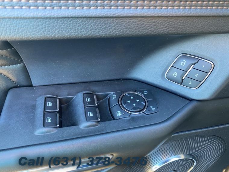 • Navigation System, Equipment Group 600A, 12 Speakers, AM/FM radio: SiriusXM, Radio data system, Radio: B&O Sound System by Bang & Olufsen, Rear audio controls, SiriusXM Satellite Radio, SYNC 3 Communications & Entertainment System, Air Conditioning, Automatic temperature control, Front dual zone A/C, Rear air conditioning, Rear window defroster, Memory seat, Pedal memory, Power driver seat, Power steering, Power windows, Remote keyless entry, Steering wheel mounted audio controls, Adaptive suspension, Four wheel independent suspension, Speed-sensing steering, Traction control, 4-Wheel Disc Brakes, ABS brakes, Dual front impact airbags, Dual front side impact airbags, Emergency communication system: SYNC 3 911 Assist, Front anti-roll bar, Low tire pressure warning, Occupant sensing airbag, Overhead airbag, Rear anti-roll bar, Power moonroof, Power Liftgate, Brake assist, Electronic Stability Control, Lane Departure Warning System, Exterior Parking Camera Rear, Auto High-beam Headlights, Delay-off headlights, Front fog lights, Fully automatic headlights, Panic alarm, Security system, Speed control, Auto-dimming door mirrors, Bumpers: body-color, Heated door mirrors, Power door mirrors, Roof rack, Turn signal indicator mirrors, 1st & 2nd Row Floor Liners, Adjustable pedals, AppLink/Apple CarPlay and Android Auto, Auto-dimming Rear-View mirror, Compass, Driver door bin, Driver vanity mirror, Front reading lights, Garage door transmitter, Genuine wood console insert, Genuine wood dashboard insert, Genuine wood door panel insert, Heated & Cooled Perforated Leather Fr Bucket Seats, Heated steering wheel, Illuminated entry, Leather steering wheel, Outside temperature display, Overhead console, Passenger vanity mirror, Rear reading lights, Reversible Cargo Mat, Tachometer, Telescoping steering wheel, Tilt steering wheel, Trip computer, Voltmeter, 3rd row seats: split-bench, Front Bucket Seats, Front Center Armrest, Heated front seats, Heated rear seats, Power passenger seat, Reclining 3rd row seat, Split folding rear seat, Ventilated front seats, Passenger door bin, 22" Polished Aluminum Wheels, Alloy wheels, Rain sensing wipers, Rear window wiper, Speed-Sensitive Wipers, Variably intermittent wipers, 3.31 Axle Ratio