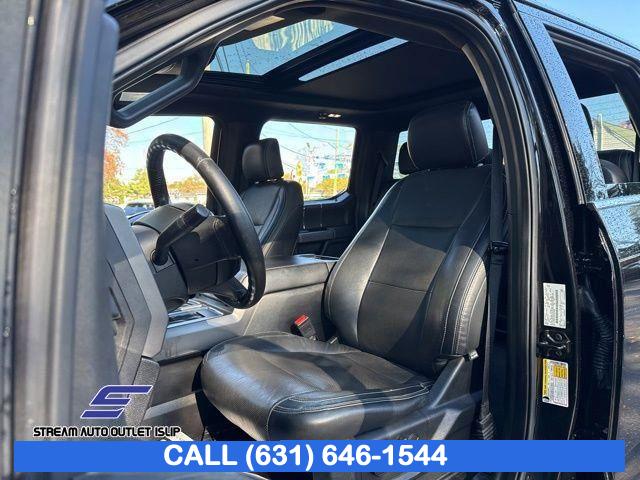 Equipment Group 302A Luxury, FX4 Off-Road Package, GVWR: 6, 500 lbs Payload Package, GVWR: 6, 600 lbs Payload Package, XLT Chrome Appearance Package, XLT Power Equipment Group, XLT Sport Appearance Package, 6 Speakers, AM/FM radio, Radio data system, Radio: AM/FM Stereo w/6 Speakers, SiriusXM Radio, Air Conditioning, Rear Window Defroster, Power steering, Power windows, Power-Adjustable Pedals, Remote keyless entry, Steering wheel mounted audio controls, Off-Road Tuned Front Shock Absorbers, Speed-sensing steering, Traction control, 4-Wheel Disc Brakes, ABS brakes, Body-Color Front & Rear Bumpers, Dual front impact airbags, Dual front side impact airbags, Emergency communication system: SYNC 3 911 Assist, Front anti-roll bar, Front wheel independent suspension, Low tire pressure warning, Occupant sensing airbag, Overhead airbag, Remote Start System, Twin Panel Moonroof, BLIS Blind Spot Information System, Brake assist, Electronic Stability Control, Exterior Parking Camera Rear, Hill Descent Control, Auto High-beam Headlights, Delay-off headlights, Front fog lights, Fully automatic headlights, Panic alarm, Security system, Speed control, 2-Bar Style Grille w/2 Minor Bars Painted Dark, 2-Bar Style Grille w/Chrome 2 Minor Bars, 4x4 FX4 Off-Road Bodyside Decal, Accent-Color Step Bars, Body-Color Door & Tailgate Handles, Box Side Decals, BoxLink, Bumpers: chrome, Chrome Door & Tailgate Handles w/Body-Color Bezel, Chrome Step Bars, Front License Plate Bracket, LED Box Lighting, LED Sideview Mirror Spotlights, Power door mirrors, Power Glass Heated Sideview Mirrors, Rear step bumper, Single-Tip Chrome Exhaust, 110V/400W Outlet, 4.2" Productivity Screen in Instrument Cluster, AppLink/Apple CarPlay and Android Auto, Auto-Dimming Rear-View Mirror, Compass, Driver door bin, Driver vanity mirror, Illuminated entry, Leather-Wrapped Steering Wheel, Outside temperature display, Passenger vanity mirror, Reverse Sensing System, SYNC 3, Tachometer, Telescoping steering wheel, Tilt steering wheel, Tray Style Floor Liner, Voice-Activated Touchscreen Navigation, Voltmeter, 8-Way Power Driver Seat, Cloth 40/20/40 Front Seat, Heated Front Seats, Rear Under-Seat Storage, Split folding rear seat, Extended Range 36 Gallon Fuel Tank, Front Center Armrest w/Storage, Passenger door bin, Class IV Trailer Hitch Receiver, Alloy wheels, Wheels: 17" Silver Painted Aluminum, Wheels: 18" 6-Spoke Machined-Aluminum, Wheels: 18" Chrome-Like PVD, Fixed Backlight w/Privacy Glass, Power-Sliding Rear Window, Variably intermittent wipers