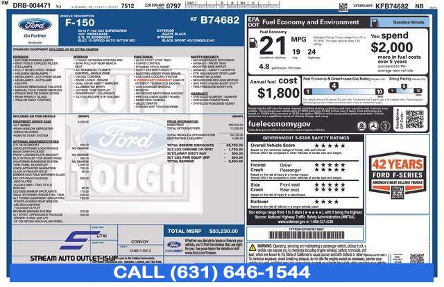 For more information on this 2019 Ford F-150, please call Stream Auto Outlet Islip at (631) 646-1544 or with the contact form on this page. This vehicle's vin number is 1FTEW1EP9KFB74682 and is recorded as being in stock at Stream Auto Outlet Islip at 2232 Sunrise Hwy in Islip. See all cars from this dealership.