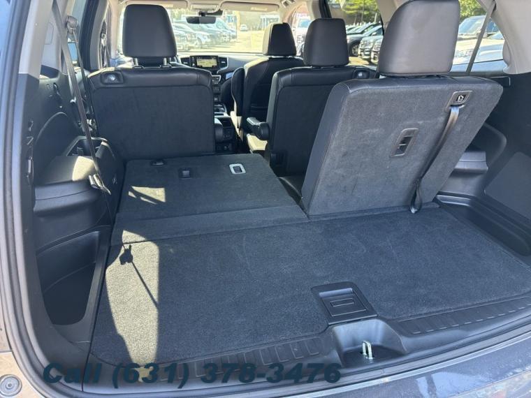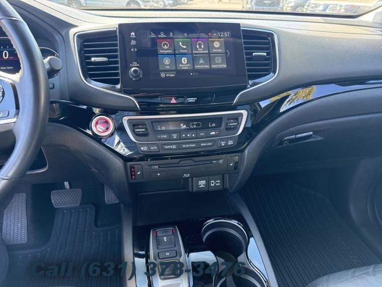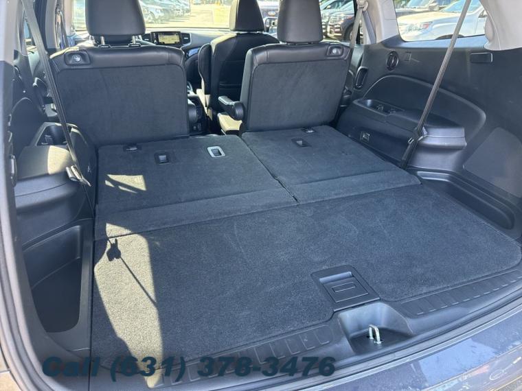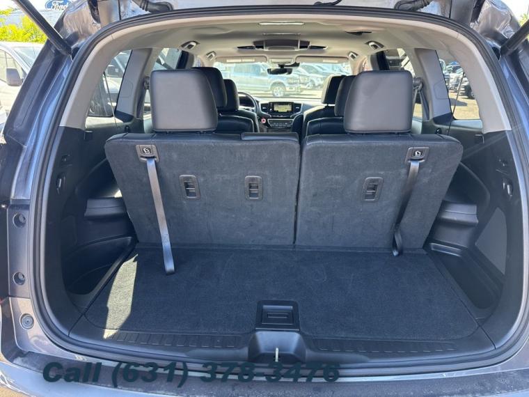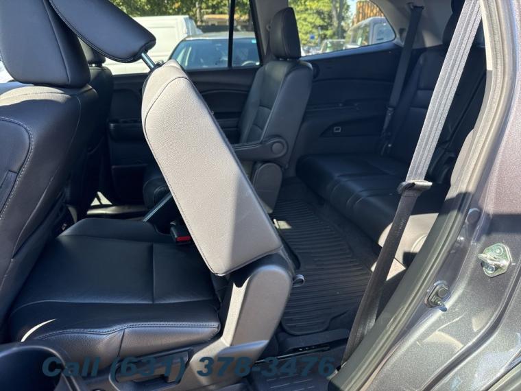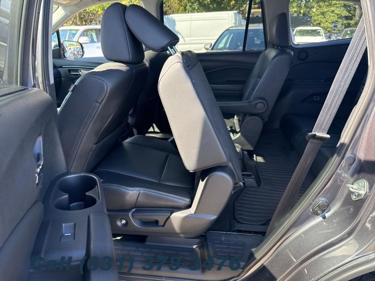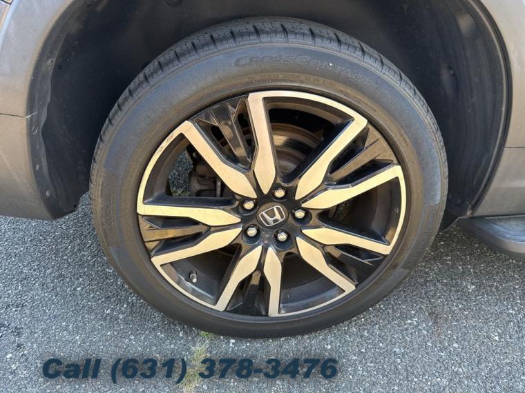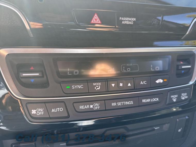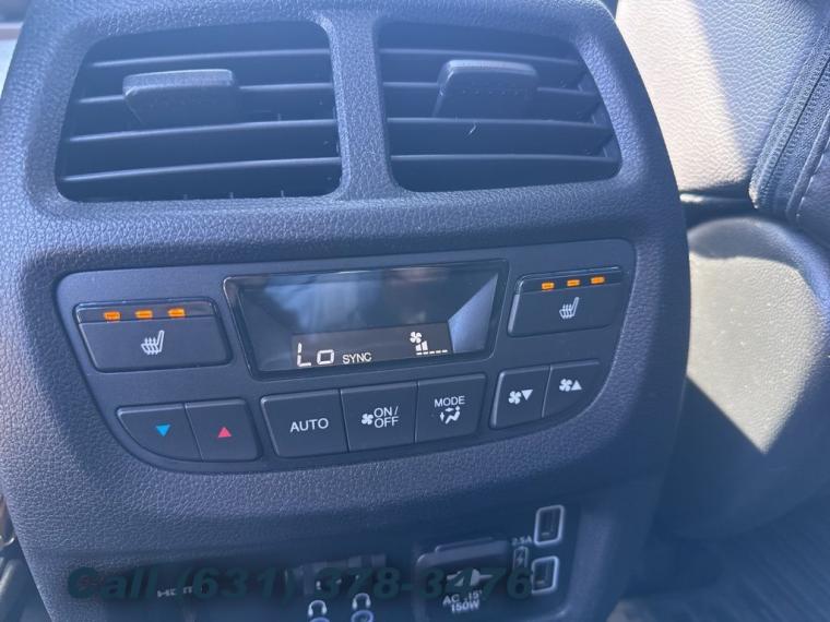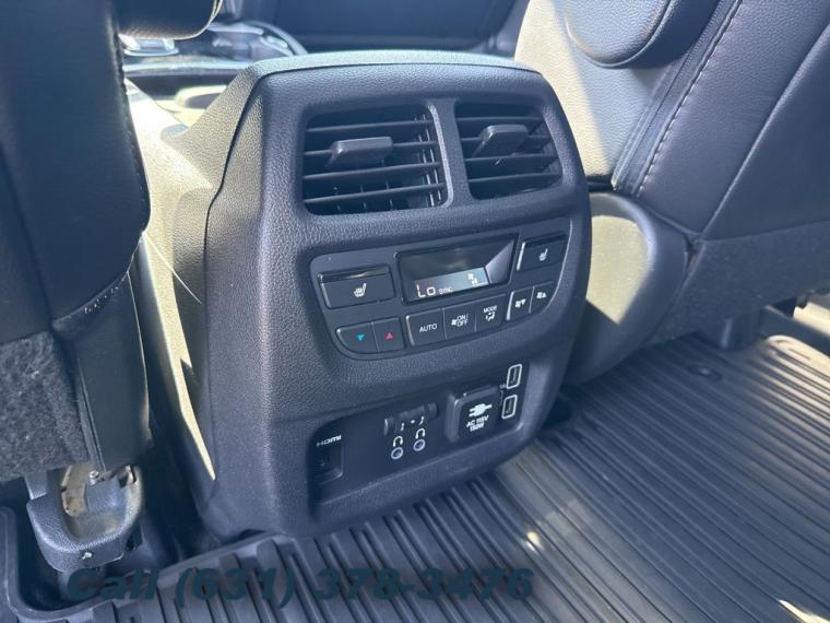 Navigation system: Honda Satellite-Linked Navigation System, 10 Speakers, AM/FM radio: SiriusXM, Radio data system, Radio: AM/FM Premium Audio System, Air Conditioning, Automatic temperature control, Front dual zone A/C, Rear air conditioning, Rear window defroster, Memory seat, Power driver seat, Power steering, Power windows, Remote keyless entry, Steering wheel mounted audio controls, A/V remote: CabinControl, Headphones, Four wheel independent suspension, Speed-sensing steering, Traction control, 4-Wheel Disc Brakes, ABS brakes, Dual front impact airbags, Dual front side impact airbags, Emergency communication system: HondaLink, Front anti-roll bar, Low tire pressure warning, Occupant sensing airbag, Overhead airbag, Rear anti-roll bar, Power moonroof, Power Liftgate, Blind Spot Information (BSI) System warning, Brake assist, Electronic Stability Control, Forward collision: Collision Mitigation Braking System (CMBS) + FCW mitigation, Lane departure: Lane Keeping Assist System (LKAS) active, Exterior Parking Camera Rear, Auto High-beam Headlights, Delay-off headlights, Front fog lights, Fully automatic headlights, Panic alarm, Security system, Speed control, Bumpers: body-color, Heated door mirrors, Power door mirrors, Roof rack: rails only, Spoiler, Turn signal indicator mirrors, Apple CarPlay/Android Auto, Auto-dimming Rear-View mirror, Compass, Driver door bin, Driver vanity mirror, Front reading lights, Garage door transmitter: HomeLink, Illuminated entry, Outside temperature display, Overhead console, Passenger vanity mirror, Rear reading lights, Tachometer, Telescoping steering wheel, Tilt steering wheel, Trip computer, 3rd row seats: split-bench, Front Bucket Seats, Front Center Armrest, Heated Front Bucket Seats, Heated front seats, Heated rear seats, Leather-Trimmed Seats, Power passenger seat, Reclining 3rd row seat, Split folding rear seat, Passenger door bin, Wheels: 20" Machine-Finished Alloy, Rear window wiper, Speed-Sensitive Wipers, Variably intermittent wipers, 4.334 Axle Ratio
