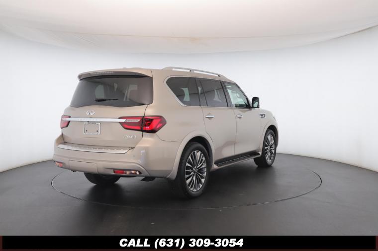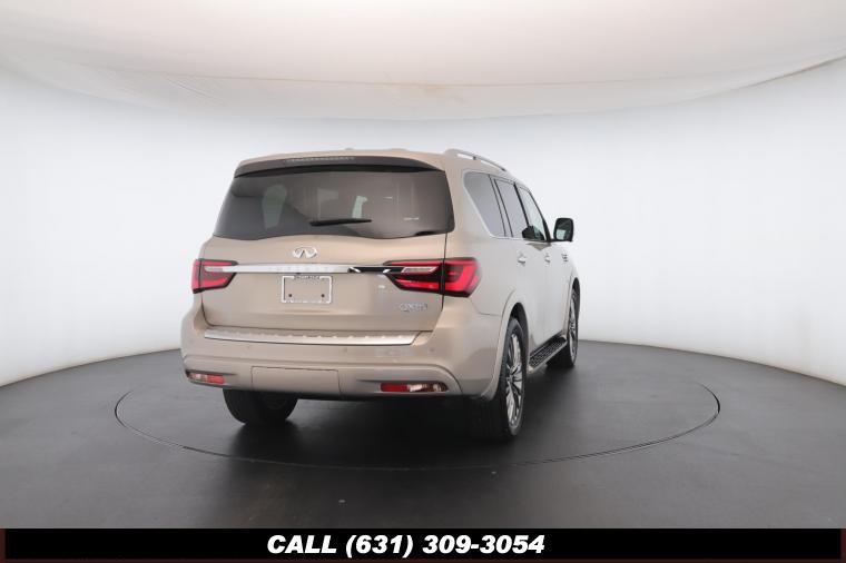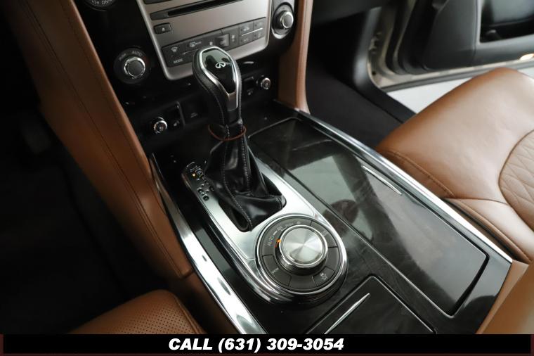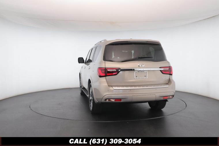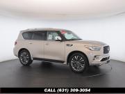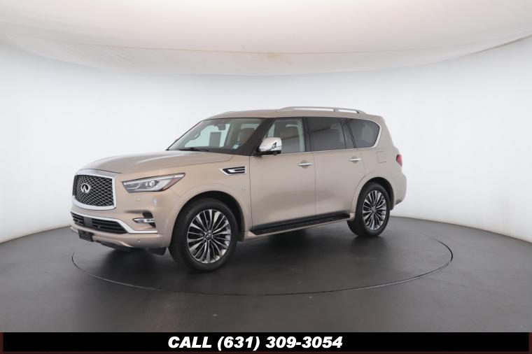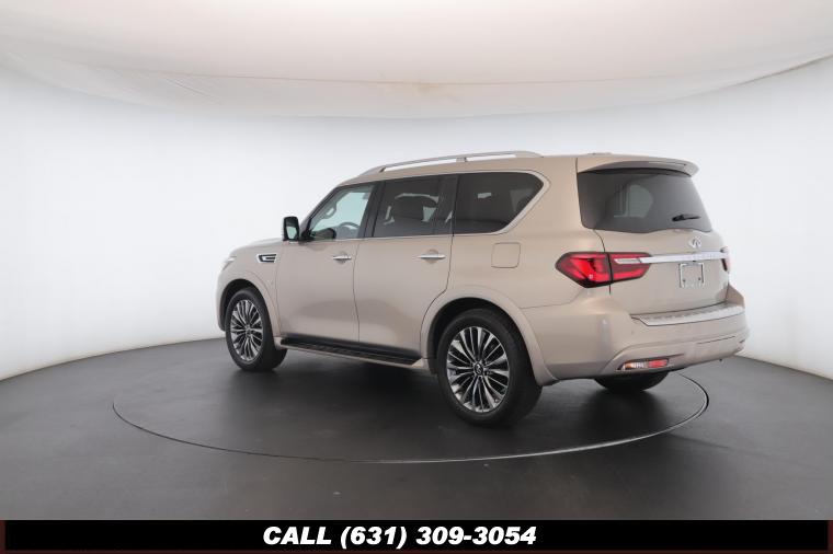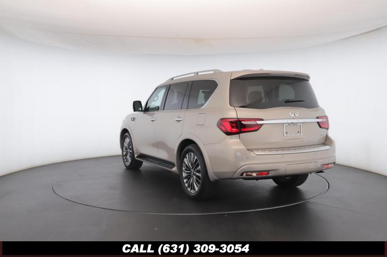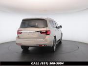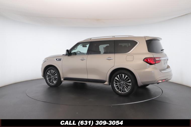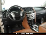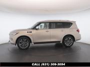 120V Power Outlet, 13 Speakers, 2.94 Axle Ratio, 22 Wheel Package, 3rd row seats: split-bench, 4-Wheel Disc Brakes, ABS brakes, Adaptive Front Lighting System, Advanced Climate Control System, Air Conditioning, Alloy wheels, AM/FM radio: SiriusXM, Anti-whiplash front head restraints, Auto High-beam Headlights, Auto tilt-away steering wheel, Auto-dimming door mirrors, Auto-dimming Rear-View mirror, Auto-leveling suspension, Automatic temperature control, Backup Collision Intervention (BCI), Blind Spot Intervention (BSI), Blind Spot Warning, Bose Cabin Surround Sound System, Brake Assist, Bumpers: body-color, CD Player, Charcoal/Espresso Burl Trim, Chrome Outside Mirror Caps, Climate-Controlled Front Seats, Delay-off headlights, Driver door bin, Driver Vanity Mirror, Dual 8 Color Monitors, Dual front impact airbags, Dual front side impact airbags, DVD-Audio, Electronic Stability Control, Emergency communication system: INFINITI Connection, Four wheel independent suspension, Front anti-roll bar, Front beverage holders, Front Bucket Seats, Front Center Armrest, Front dual zone A/C, Front fog lights, Front Pre-Crash Seatbelts, Front reading lights, Fully automatic headlights, Garage door transmitter: HomeLink, Genuine wood console insert, Genuine wood dashboard insert, Genuine wood door panel insert, Headlight Washers, Heated 2nd-Row Seats, Heated door mirrors, Heated Front Bucket Seats, Heated front seats, Heated Steering Wheel, Hydraulic Body Motion Control System, Illuminated entry, Intelligent Cruise Control (Full-Speed Range), Lane Departure Warning System, Leather Shift Knob, Leather Steering Wheel, Leather-Appointed Seats w/Stratford Burl Trim, Literature Kit, Low tire pressure warning, Memory seat, Navigation system: INFINITI InTouch Navigation, Occupant sensing airbag, Outside temperature display, Overhead airbag, Overhead console, Panic alarm, Passenger door bin, Passenger Vanity Mirror, Power door mirrors, Power Driver Seat, Power Liftgate, Power moonroof, Power Passenger Seat, Power Steering, Power Windows, ProACTIVE Package, ProASSIST Package, Radiant Illuminated Kick Plates, Radio data system, Radio: AM/FM/HD w/Single In-Dash CD/DVD Player & MP3, Rain Sensing Wipers, Rear air conditioning, Rear anti-roll bar, Rear audio controls, Rear reading lights, Rear seat center armrest, Rear window defroster, Rear window wiper, Reclining 3rd row seat, Remote keyless entry, Roof rack: rails only, Security System, Semi-Aniline Leather-Appointed Seating w/Quilting, Sensory Package, Smart Rear View Mirror, Speed control, Speed-sensing steering, Split Bench Seat Package, Split folding rear seat, Spoiler, Steering wheel memory, Steering wheel mounted audio controls, Tachometer, Telescoping steering wheel, Theater Package, Tilt steering wheel, Traction Control, Trip Computer, Turn signal indicator mirrors, Variably intermittent wipers, Vehicle Speed-Sensitive Power Steering, Voltmeter, Wheels: 20 x 8.0 Aluminum-Alloy, Wheels: 22 x 8.0 14-Spoke Forged Aluminum-Alloy, Wireless Headphones (2)