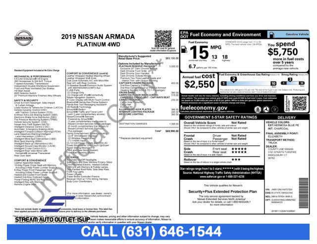 For more information on this 2019 Nissan Armada, please call Stream Auto Outlet Islip at (631) 646-1544 or with the contact form on this page. This vehicle's vin number is JN8AY2NE1K9757554 and is recorded as being in stock at Stream Auto Outlet Islip at 2232 Sunrise Hwy in Islip. See all cars from this dealership.