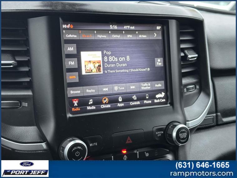 Heated Seats, Keyless Start, Back-Up Camera, 4x4, Bed Liner, Tow Hitch, UNDER RAIL BOX BEDLINER, BLACK, DELUXE CLOTH BUCKET SEATS, ENGINE: 3.6L V6 24V VVT ETORQUE UPG I... TRANSMISSION: 8-SPEED AUTOMATIC (850R... OFF ROAD GROUP <br /<br /KEY FEATURES INCLUDE<br /4x4, Back-Up Camera, Keyless Start Keyless Entry, Privacy Glass, Child Safety Locks, Electronic Stability Control. Ram Big Horn/Lone Star with Delmonico Red Pearlcoat exterior and Black interior features a V6 Cylinder Engine with 305 HP at 6400 RPM*. <br /<br /OPTION PACKAGES<br /BIG HORN LEVEL 2 EQUIPMENT GROUP Radio: Uconnect 4 w/8.4 Display, Rear Window Defroster, Integrated Center Stack Radio, ParkSense Front/Rear Park Assist w/Stop, Rear View Auto Dim Mirror, Power Adjustable Pedals, Rear Power Sliding Window, Rear Dome w/On/Off Switch Lamp, Glove Box Lamp, Power 4-Way Driver Lumbar Adjust, 115V Auxiliary Rear Power Outlet, Power 8-Way Driver Seat, 2 USB Full Function/Charge Only Media Hub, Heated Front Seats, Heated Steering Wheel, 8.4 Touchscreen Display, Foam Bottle Insert (Door Trim Panel), Class IV Receiver Hitch, Dampened Tailgate, Security Alarm, Power Heated Fold Away Mirrors, Big Horn IP Badge, Remote Start System, SiriusXM Satellite Radio, 400W Inverter, Air Conditioning ATC w/Dual Zone Control, 115V Auxiliary Power Outlet, Cluster 7.0 TFT Color, WHEELS: 20 X 9 ALUMINUM CHROME CLAD, SPORT APPEARANCE PACKAGE Tires: 275/55R20 OWL All Season, Exterior Mirrors w/Supplemental Signals, Power Heated Fold-Away Mirrors, Body Color Door Handles, Exterior Mirrors Courtesy Lamps, Auto Dim Exterior Driver Mirror, Exterior Mirrors w/Memory, Grille B/Color Outline 1 Texture 2, Black Interior Accents, Power-Folding Mirrors, Body Color Front Bumper, Body Color Rear Bumper w/Step Pads, OFF ROAD GROUP Off Road Decals, Steering Gear Skid Plate, Front Suspension Skid Plate, Front Extra HD Shock Absorbers, Rear Extra HD Shock Absorbers, Tire: Full Size Spare, Tow Hooks, E-Locker Rear Axle, Transfer Case Skid Plate, Fuel Tank Skid Plate, Hill Descent Control, UNDER RAIL BOX BEDLINER, QUICK ORDER PACKAGE 23Z BIG HORN/LONE STAR Engine: 3.6L V6 24V VVT eTorque UPG I, Transmission: 8-Speed Automatic (850RE), Steering Wheel Mounted Audio Controls, TRANSMISSION: 8-SPEED AUTOMATIC (850RE) (STD), ENGINE: 3.6L V6 24V VVT ETORQUE UPG I (STD), BLACK, DELUXE CLOTH BUCKET SEATS Power 8-Way Driver Seat, Center Console Parts Module, Bucket Seats, Manual Adjust 4-Way Front Passenger Seat, Full Length Floor Console, Power 4-Way Driver Lumbar Adjust. <br /<br /VEHICLE REVIEWS<br /Edmunds.com explains It feels strong off the line, and it serves up excellent roll-on acceleration when its time to merge or make a pass.. <br /<br /Horsepower calculations based on trim engine configuration. Please confirm the accuracy of the included equipment by calling us prior to purchase. <br /