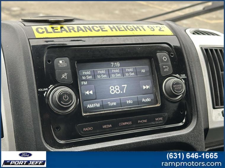 Black interior. Brake Actuated Limited Slip Differential, Bluetooth®, iPod/MP3 Input, ENGINE: 3.6L V6 24V VVT, POWER FOLDING/HEATED MIRRORS, TRANSMISSION: 6-SPEED AUTOMATIC 62TE, Back-Up Camera. <br /<br /KEY FEATURES INCLUDE<br /Back-Up Camera, iPod/MP3 Input, Bluetooth®, Brake Actuated Limited Slip Differential MP3 Player, Third Passenger Door, Keyless Entry, Steering Wheel Controls. Ram ProMaster Cargo Van with Black interior features a V6 Cylinder Engine with 280 HP at 6400 RPM*. <br /<br /OPTION PACKAGES<br /POWER FOLDING/HEATED MIRRORS, ENGINE: 3.6L V6 24V VVT (STD), TRANSMISSION: 6-SPEED AUTOMATIC 62TE (STD). <br /<br /Horsepower calculations based on trim engine configuration. Please confirm the accuracy of the included equipment by calling us prior to purchase. <br /