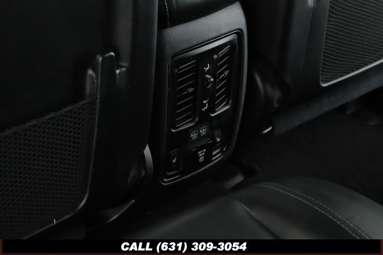 2nd Row Fold/Tumble Captain Chairs, 2nd Row Mini Console w/Cupholders, 2nd Row Seat Mounted Inboard Armrests, 3.09 Rear Axle Ratio, 3rd Row Floor Mat & Mini Console, 3rd row seats: split-bench, 4-Wheel Disc Brakes, 6-Passenger Seating, 9 Speakers, ABS brakes, Adjustable head restraints: driver and passenger w/tilt, Air Conditioning, Alloy wheels, AM/FM radio: SiriusXM, Anti-whiplash front head restraints, Apple CarPlay/Android Auto, Audio memory, Auto High-beam Headlights, Auto-dimming door mirrors, Auto-dimming Rear-View mirror, Auto-leveling suspension, Automatic temperature control, Blacktop Package, Blind Spot & Cross Path Detection, Brake Assist, Bumpers: body-color, Compass, Delay-off headlights, Driver door bin, Driver Vanity Mirror, Dual front impact airbags, Dual front side impact airbags, Electronic Stability Control, Emergency communication system: Roadside Assistance/9-1-1 Call, Four wheel independent suspension, Front anti-roll bar, Front Bucket Seats, Front Center Armrest w/Storage, Front dual zone A/C, Front fog lights, Front License Plate Bracket, Front reading lights, Fully automatic headlights, Garage door transmitter, Gloss Black Badges, Gloss Black Exterior Mirrors, Heated door mirrors, Heated front seats, Heated rear seats, Heated Steering Wheel, Heavy-Duty Engine Cooling, High-Intensity Discharge Headlights, Illuminated entry, Knee airbag, Leather Steering Wheel, Leather Suede Bucket Seats, Low tire pressure warning, Memory seat, Navigation System, Occupant sensing airbag, Outside temperature display, Overhead airbag, Overhead console, Panic alarm, ParkView Rear Back-Up Camera, Passenger door bin, Passenger Vanity Mirror, Power door mirrors, Power Driver Seat, Power Liftgate, Power Passenger Seat, Power Steering, Power Sunroof, Power Windows, Quick Order Package 22S, Radio data system, Radio: Uconnect 4C Nav w/8.4 Display, Rain Sensing Wipers, Rear air conditioning, Rear anti-roll bar, Rear Load Leveling Suspension, Rear reading lights, Rear seat center armrest, Rear window defroster, Rear window wiper, Remote keyless entry, Security System, Speed control, Speed-Sensitive Wipers, Split folding rear seat, Spoiler, Steering wheel mounted audio controls, Tachometer, Telescoping steering wheel, Tilt steering wheel, Traction Control, Trip Computer, Turn signal indicator mirrors, Variably intermittent wipers, Wheels: 20 x 8.0 High Gloss Black Aluminum, Wheels: 20 x 8.0 Satin Carbon - Design 1