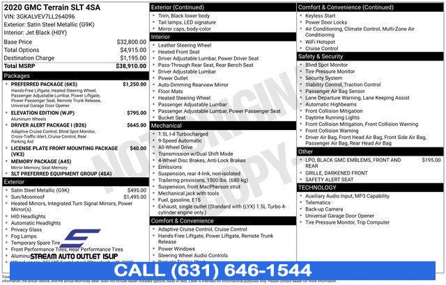 For more information on this 2020 GMC Terrain, please call Stream Auto Outlet Islip at (631) 646-1544 or with the contact form on this page. This vehicle's vin number is 3GKALVEV7LL264096 and is recorded as being in stock at Stream Auto Outlet Islip at 2232 Sunrise Hwy in Islip. See all cars from this dealership.