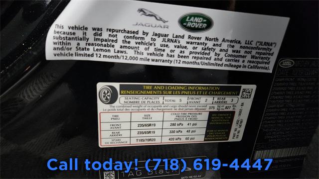 Navigation system: InControl Navigation Pro, 13 Speakers, AM/FM radio: SiriusXM, Premium audio system: Meridian, Radio data system, Radio: 380W Meridian Sound System w/Navigation Pro, Weather band radio, Air Conditioning, Automatic temperature control, Front dual zone A/C, Rear air conditioning, Rear window defroster, Memory seat, Power driver seat, Power steering, Power windows, Remote keyless entry, Steering wheel memory, Steering wheel mounted A/C controls, Steering wheel mounted audio controls, Adaptive suspension, Auto-leveling suspension, Four wheel independent suspension, Speed-sensing steering, Traction control, 4-Wheel Disc Brakes, ABS brakes, Anti-whiplash front head restraints, Dual front impact airbags, Dual front side impact airbags, Emergency communication system: InControl Protect, Front anti-roll bar, Low tire pressure warning, Occupant sensing airbag, Overhead airbag, Rear anti-roll bar, Power moonroof, Brake assist, Electronic Stability Control, Exterior Parking Camera Rear, Delay-off headlights, Fully automatic headlights, Headlight cleaning, Rear fog lights, Panic alarm, Security system, Speed control, Auto-dimming door mirrors, Bumpers: body-color, Heated door mirrors, Power door mirrors, Turn signal indicator mirrors, 16-Way Heated Front Bucket Seats, Apple CarPlay & Android Auto, Auto tilt-away steering wheel, Auto-dimming Rear-View mirror, Compass, Driver door bin, Driver vanity mirror, Front reading lights, Garage door transmitter: HomeLink, Genuine wood console insert, Genuine wood dashboard insert, Genuine wood door panel insert, Illuminated entry, Outside temperature display, Overhead console, Passenger seat mounted armrest, Passenger vanity mirror, Rear reading lights, Rear seat center armrest, Tachometer, Telescoping steering wheel, Tilt steering wheel, Trip computer, Driver's Seat Mounted Armrest, Front Bucket Seats, Grained Leather Seat Trim, Heated front seats, Power passenger seat, Split folding rear seat, Front Center Armrest w/Storage, Passenger door bin, Alloy wheels, Wheels: 19" 5 Split-Spoke, Rain sensing wipers, Rear window wiper, Speed-Sensitive Wipers, Variably intermittent wipers, 3.73 Axle Ratio