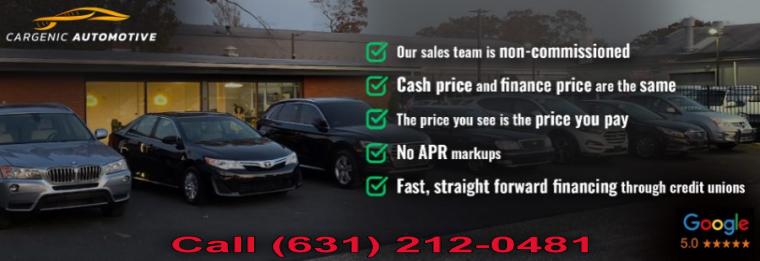 Disclaimer: All prices on used cars exclude the cost of vehicle registration, title, fees and taxes. Neither Cargenic Automotive nor Long Island Used Cars is responsible for typographical errors or misprints. All information should be double checked with dealer including pricing and availability. Additionally, some states require dealers to notify consumers that all vehicles may be subject to open recall(s). Vehicles can be checked for open recalls by visiting www.SaferCar.gov or www.nhtsa.gov/recalls. Vehicles are subject to prior sale and may no longer be available. Please check with the seller for more information. You can check for recall status with this RECALL STATUS LINK.