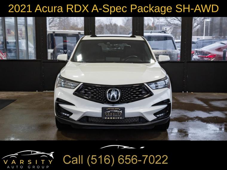 2021 Acura RDX A-Spec Package SH-AWD, Platinum White Pearl, Ebony w/Leatherette-Trimmed Interior, Apple CarPlay/Android Auto, One Owner, Clean CARFAX, Low Miles, AWD, 16 Speakers, 4-Wheel Disc Brakes, 4.17 Axle Ratio, ABS brakes, Air Conditioning, Alloy wheels, AM/FM radio: SiriusXM, Apple CarPlay/Android Auto, Auto High-beam Headlights, Auto-dimming Rear-View mirror, Automatic temperature control, Brake assist, Bumpers: body-color, Compass, Delay-off headlights, Driver door bin, Driver vanity mirror, Dual front impact airbags, Dual front side impact airbags, Electronic Stability Control, Emergency communication system: AcuraLink, Exterior Parking Camera Rear, Four wheel independent suspension, Front anti-roll bar, Front Bucket Seats, Front Center Armrest, Front dual zone A/C, Front fog lights, Front reading lights, Fully automatic headlights, Garage door transmitter: HomeLink, Heated & Ventilated Front Sport A-Spec Seats, Heated door mirrors, Heated front seats, Illuminated entry, Knee airbag, Lane departure: Lane Keeping Assist System (LKAS) active, Low tire pressure warning, Memory seat, Navigation system: Acura Navigation System with 3D View, Occupant sensing airbag, Outside temperature display, Overhead airbag, Overhead console, Panic alarm, Passenger door bin, Passenger vanity mirror, Perforated Milano Premium Leather-Trimmed Interior, Power door mirrors, Power driver seat, Power Liftgate, Power moonroof, Power passenger seat, Power steering, Power windows, Premium audio system: Acura/ELS Studio 3D, Radio data system, Radio: Acura ELS Studio 3D Premium Audio System, Rear anti-roll bar, Rear reading lights, Rear seat center armrest, Rear window defroster, Rear window wiper, Remote keyless entry, Security system, Speed control, Speed-sensing steering, Split folding rear seat, Spoiler, Steering wheel mounted audio controls, Tachometer, Telescoping steering wheel, Tilt steering wheel, Traction control, Trip computer, Turn signal indicator mirrors, Variably intermittent wipers, Ventilated front seats, Wheels: 20" x 8" Shark Gray Split 5-Spoke. Platinum White Pearl 2021 Acura RDX A-Spec Package SH-AWD AWD 10-Speed Automatic 2.0L 16V DOHC 21/26 City/Highway MPG