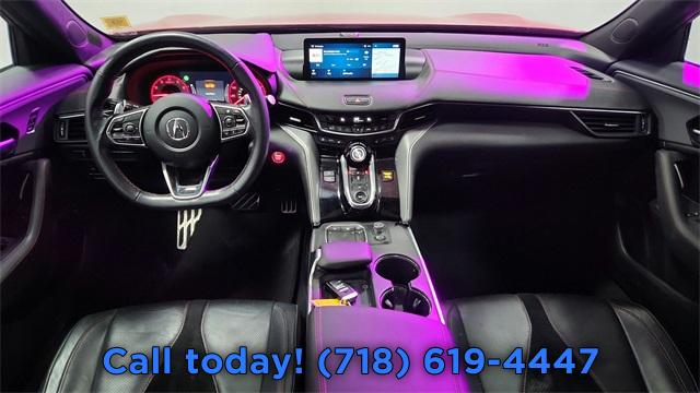 • Navigation system: Acura Navigation System with 3D View, 17 Speakers, AM/FM radio: SiriusXM, Premium audio system: Acura/ELS Surround, Radio data system, Radio: ELS Studio 3D Premium Audio System, Air Conditioning, Automatic temperature control, Front dual zone A/C, HVAC memory, Rear window defroster, Memory seat, Power driver seat, Power steering, Power windows, Remote keyless entry, Steering wheel mounted audio controls, Four wheel independent suspension, Speed-sensing steering, Traction control, 4-Wheel Disc Brakes, ABS brakes, Anti-whiplash front head restraints, Dual front impact airbags, Dual front side impact airbags, Emergency communication system: AcuraLink, Front anti-roll bar, Knee airbag, Low tire pressure warning, Occupant sensing airbag, Overhead airbag, Rear anti-roll bar, Power moonroof, Brake assist, Electronic Stability Control, Lane departure: Lane Keeping Assist System (LKAS) active, Exterior Parking Camera Rear, Auto High-beam Headlights, Delay-off headlights, Front fog lights, Panic alarm, Security system, Speed control, Bumpers: body-color, Heated door mirrors, Power door mirrors, Spoiler, Turn signal indicator mirrors, Acura Navigation System w/3D View, Apple CarPlay/Android Auto, Auto-dimming Rear-View mirror, Compass, Driver door bin, Driver vanity mirror, Front reading lights, Garage door transmitter: HomeLink, Heated & Ventilated Front Sport Seats, Illuminated entry, Leather steering wheel, Outside temperature display, Overhead console, Passenger vanity mirror, Rear reading lights, Rear seat center armrest, Sport steering wheel, Tachometer, Telescoping steering wheel, Tilt steering wheel, Trip computer, Front Bucket Seats, Heated front seats, Power passenger seat, Prem Perf Milano & Ultrasuede Trimmed Interior, Split folding rear seat, Ventilated front seats, Front Center Armrest w/Storage, Passenger door bin, Alloy wheels, Wheels: 19" x 8.5" Shark Gray Interwoven, Speed-Sensitive Wipers, Variably intermittent wipers