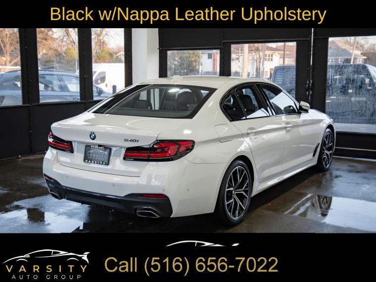 Navigation System, Connected Package Pro, Driving Assistance Plus Package, Executive Package, Luxury Seating Package, M Sport Package, Parking Assistance Package, 12 Speakers, AM/FM radio: SiriusXM with 360L, harman/kardon Surround Sound System, Hi-Fi Sound System, Radio data system, Radio: AM/FM Audio System, SiriusXM w/360L, Air Conditioning, Automatic temperature control, Front dual zone A/C, Rear window defroster, Head-Up Display, Lumbar Support, Memory seat, Power driver seat, Power steering, Power windows, Remote Engine Start, Remote keyless entry, Steering wheel memory, Steering wheel mounted audio controls, Four wheel independent suspension, M Sport Suspension, Speed-sensing steering, Traction control, 4-Wheel Disc Brakes, ABS brakes, Dual front impact airbags, Dual front side impact airbags, Emergency communication system: BMW Assist eCall, Front anti-roll bar, Low tire pressure warning, Occupant sensing airbag, Overhead airbag, Rear anti-roll bar, Variable Sport Steering, Power moonroof, Power Tailgate, Brake assist, Electronic Stability Control, Exterior Parking Camera Rear, Rear-View Camera, Auto High-beam Headlights, Delay-off headlights, Fully automatic headlights, Panic alarm, Security system, Active Driving Assistant Pro, Extended Traffic Jam Assistant, Speed control, Aerodynamic Kit, Auto-dimming door mirrors, Bumpers: body-color, Heated door mirrors, Power door mirrors, Shadowline Exterior Trim, Turn signal indicator mirrors, Without Lines Designation Outside, Active Park Distance Control, Apple CarPlay & Android Auto Compatibility, Auto tilt-away steering wheel, Auto-dimming Rear-View mirror, BMW Assist eCall, BMW TeleServices, Ceramic Controls, ConnectedDrive Services, Drive Recorder, Driver door bin, Driver vanity mirror, Enhanced USB & Bluetooth, Enhanced USB & Bluetooth (ZEB), Front reading lights, Garage door transmitter, Genuine wood console insert, Genuine wood dashboard insert, Genuine wood door panel insert, Gesture Control, Illuminated entry, Leather Shift Knob, Leather steering wheel, Live Cockpit Pro w/Navi, M Sport Pkg, M Steering Wheel, Outside temperature display, Parking Assistant Plus, Passenger vanity mirror, Rear reading lights, Rear seat center armrest, Sport steering wheel, Surround View w/3D View, Tachometer, Telescoping steering wheel, Tilt steering wheel, Trip computer, WiFi Hotspot, Wireless Charging, Front Bucket Seats, Front Center Armrest, Front Ventilated Seats, Heated Front Seats, Multi-Contour Seats, Nappa Leather Upholstery, Perforated Sensatec Upholstery, Power Front Seats, Power passenger seat, Split folding rear seat, Sport Seats, Passenger door bin, Alloy wheels, Wheels: 19" x 8" M Y-Spoke Bicolor Jet Black, Power Rear Sunshade, Rain sensing wipers, Speed-Sensitive Wipers, Variably intermittent wipers, 2021 BMW 5 Series 540i M Sport, Alpine White, Black w/Nappa Leather Upholstery, Clean CARFAX