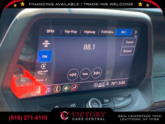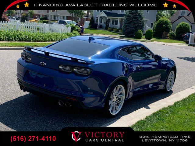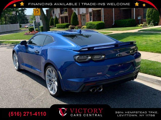 All pricing and details are believed to be accurate, but we do not warrant or guarantee such accuracy. The prices shown above may vary from region to region, as will incentives, and are subject to change. All cars are sold cosmetically As-Is. Vehicle information is based on standard equipment and may vary from vehicle to vehicle. Call or email for complete vehicle specific information. Price Does not include tax, title, license, destination charges, finance charges, or any reconditioning fees. Our special Internet pricing cannot be extended without a printed copy of the online pricing. The in-store price may exceed our special online pricing. Sorry but we cannot extend special pricing without a printed copy of the on-line pricing. To take advantage of our special Internet discounts, please print this page and present it to your salesperson at the BEGINNING of the transaction. Special Internet pricing posted on this ad/coupon/promotion is only available to customers who reference such pricing & present the ad at time of sale otherwise our store standard list price applies. Please be advised this ad is a Special Internet only ad. Prices can be modified and adjusted weekly, daily and sometimes hourly due to inquiries, bidding and website traffic on any Vehicles. All displayed inventory is subject to prior sale and all prices expire at midnight on the date displayed. Every reasonable effort has been made to ensure the accuracy of the information contained on this site, however absolute accuracy cannot be guaranteed. Advertised special excludes state tax, title, license, registration, NY state inspection, NYS tire recycling fee, finance charges, and dealer fees if applicable. Please verify any information in question with the dealership sales manager. This is easily done by calling us at (516) 271-4110 or by visiting us at the dealership. **With approved credit. Riverside Blue Metallic 2021 Chevrolet Camaro SS 1SS RWD 10-Speed Automatic 6.2L V8