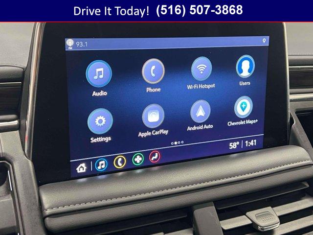 LICENSE PLATE FRONT MOUNTING PACKAGE, JET BLACK LEATHER SEATING SURFACES 1ST AND 2ND ROW, STEERING WHEEL HEATED AUTOMATIC, AUDIO SYSTEM CHEVROLET INFOTAINMENT 3 PLUS SYSTEM 10.2 DIAGONAL HD COLOR TOUCHSCREEN AM/FM stereo Bluetooth audio streaming for 2 active devices Apple CarPlay and Android Auto capable enhanced voice recognition in-vehicle apps cloud connected personalization for select infotainment and vehicle settings. Subscription required for enhanced and connected services after trial period. (STD), REAR PEDESTRIAN ALERT, SEATS SECOND ROW BUCKET POWER RELEASE, REAR AXLE 3.23 RATIO, Z71 PREFERRED EQUIPMENT GROUP includes standard equipment, REAR CROSS TRAFFIC ALERT, LANE CHANGE ALERT WITH SIDE BLIND ZONE ALERT, MIRRORS OUTSIDE HEATED POWER-ADJUSTABLE POWER-FOLDING DRIVER-SIDE AUTO-DIMMING integrated turn signal indicators and puddle lighting, SUSPENSION PACKAGE PREMIUM SMOOTH RIDE (STD), HD SURROUND VISION, LUXURY PACKAGE includes (WPD) Driver Alert Package content (UV2) HD Surround Vision (UKK) Rear Pedestrian Alert (A45) memory settings (DXR) outside heated power-adjustable power-folding body-color mirrors with driver-side auto-dimming and integrated turn signal indicators (N38) power tilt and telescopic steering column (KI3) automatic heated steering wheel (KA6) second row outboard heated seats (ATT) second row power 60/40 split-folding bench seats and (AS8) third row power 60/40 split-folding bench seats, SEATS THIRD ROW 60/40 SPLIT-BENCH POWER FOLDING, SUNROOF POWER PANORAMIC DUAL-PANE TILT-SLIDING with express-open and close and power sunshade, DRIVER ALERT PACKAGE includes (UHX) Lane Keep Assist with Lane Departure Warning (UKC) Lane Change Alert with Side Blind Zone Alert (UFG) Rear Cross Traffic Alert and (UD5) Front and Rear Park Assist, TRANSMISSION 10-SPEED AUTOMATIC electronically controlled with overdrive includes Traction Select System including tow/haul (Most vehicles built on or after 6-7-2021 with a V8 engine will have (NSS) Not Equipped with Automatic Stop/Start which removes Automatic Stop/Start Engine control stop/start disable button and its content.) (STD), LPO POLISHED EXHAUST TIP (dealer-installed), FRONT AND REAR PARK ASSIST, LANE KEEP ASSIST with Lane Departure Warning, STEERING COLUMN POWER TILT AND TELESCOPIC, BLACK, CONSOLE FLOOR POWER-SLIDING CENTER with drawer secure storage manual sliding armrest and cup holders for second row;, MEMORY SETTINGS RECALLS 2 DRIVER PRESETS FOR POWER DRIVER SEAT OUTSIDE REARVIEW MIRRORS AND POWER AND TILT AND TELESCOPIC STEERING COLUMN, SEATS FRONT BUCKET (STD), SEATS HEATED SECOND ROW OUTBOARD SEATS, LPO WHEEL LOCKS SET OF 4 (dealer-installed), ENGINE 5.3L ECOTEC3 V8 with Dynamic Fuel Management Direct Injection and Variable Valve Timing includes aluminum block construction (355 hp [265 kW] @ 5600 rpm 383 lb-ft of torque [518 Nm] @ 4100 rpm) (STD)