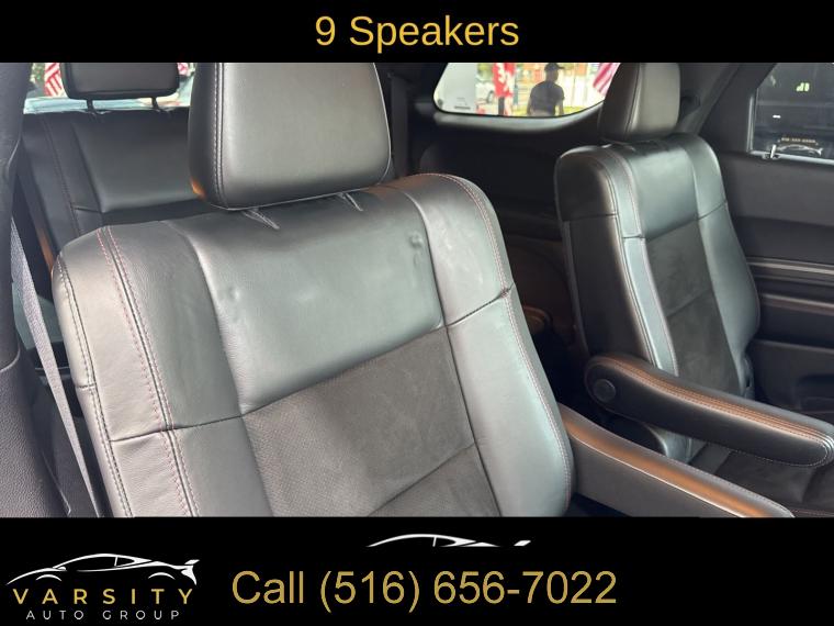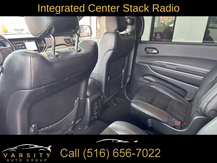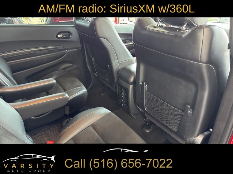 GPS Navigation, Navigation system: TomTom, Blacktop Package, Quick Order Package 22S, 9 Speakers, AM/FM radio: SiriusXM w/360L, Audio memory, GPS Antenna Input, HD Radio, Integrated Center Stack Radio, Integrated Voice Command w/Bluetooth, Radio data system, Radio: Uconnect 5 Nav w/10.1" Display, SiriusXM Satellite Radio, SiriusXM w/360L, Air Conditioning, Automatic temperature control, Front dual zone A/C, Rear air conditioning, Rear window defroster, Memory seat, Power driver seat, Power steering, Power windows, Remote keyless entry, Steering wheel mounted audio controls, Auto-leveling suspension, Four wheel independent suspension, Rear Load Leveling Suspension, Speed-sensing steering, Traction control, 4-Wheel Disc Brakes, ABS brakes, Anti-whiplash front head restraints, Dual front impact airbags, Dual front side impact airbags, Emergency communication system: SiriusXM Guardian, Front anti-roll bar, Knee airbag, Low tire pressure warning, Occupant sensing airbag, Overhead airbag, Rear anti-roll bar, Power Sunroof, Power Liftgate, Brake assist, Electronic Stability Control, ParkView Rear Back-Up Camera, Auto High-beam Headlights, Delay-off headlights, Front fog lights, Fully automatic headlights, Panic alarm, Security system, Speed control, Heavy-Duty Engine Cooling, Auto-dimming door mirrors, Bumpers: body-color, Front License Plate Bracket, Gloss Black Badges, Gloss Black Exterior Mirrors, Heated door mirrors, Hemi Badge, Power door mirrors, Satin Black Dodge Tail Lamp Badge, Spoiler, Turn signal indicator mirrors, 10.1" Touchscreen Display, 2nd Row Mini Console w/Cupholders, 3rd Row Floor Mat & Mini Console, 4G LTE Wi-Fi Hot Spot, Apple CarPlay, Apple CarPlay/Android Auto, Auto-dimming Rear-View mirror, Compass, Connected Travel & Traffic Services, Disassociated Touchscreen Display, Driver door bin, Driver vanity mirror, Front reading lights, Garage door transmitter, Global Telematics Box Module (TBM), Google Android Auto, Heated steering wheel, Illuminated entry, Leather steering wheel, Leather Suede Bucket Seats, Manufacturer's Statement of Origin, Outside temperature display, Overhead console, Passenger vanity mirror, Radar Red Interior Accent Stitch, Rear reading lights, Rear seat center armrest, SiriusXM Guardian - Included Trial (B), Tachometer, Telescoping steering wheel, Tilt steering wheel, Trip computer, USB Host Flip, Voltmeter, 2nd Row Fold/Tumble Captain Chairs, 3rd row seats: split-bench, 6-Passenger Seating, Front Bucket Seats, Heated front seats, Heated rear seats, Power passenger seat, Split folding rear seat, Front Center Armrest w/Storage, Passenger door bin, Wheels: 20" x 8.0" Black Noise Aluminum, Rain sensing wipers, Rear window wiper, Speed-Sensitive Wipers, Variably intermittent wipers, 3.09 Rear Axle Ratio, 2021 Dodge Durango R/T, Redline 2 Coat Pearl, Black w/Leather Suede Bucket Seats or Leather Trimmed Bucket Seats, 5.7L Hemi V8, All wheel drive, Quick Order Package 22 S, Clean CARFAX, Low Miles